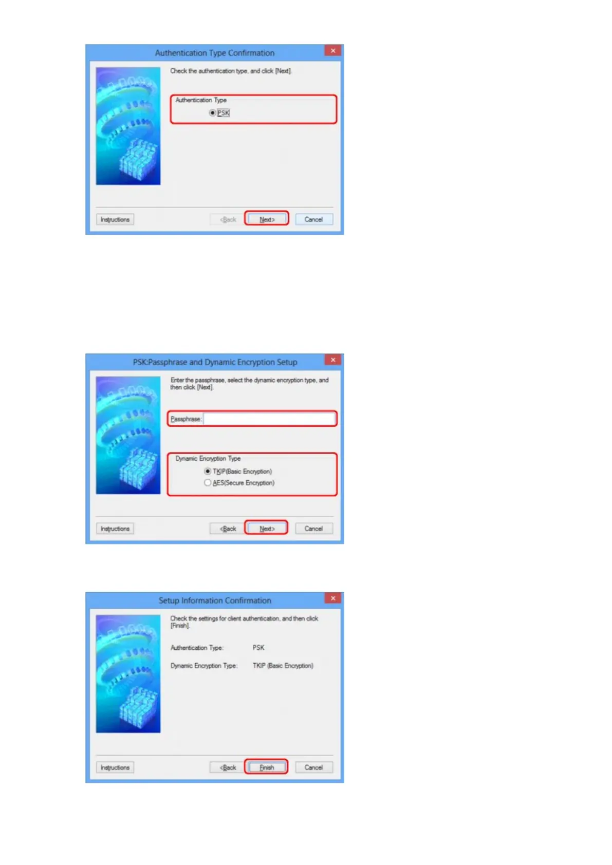Enter the passphrase set to the access point. The passphrase should be a string of 8 to 63 alphanumeric