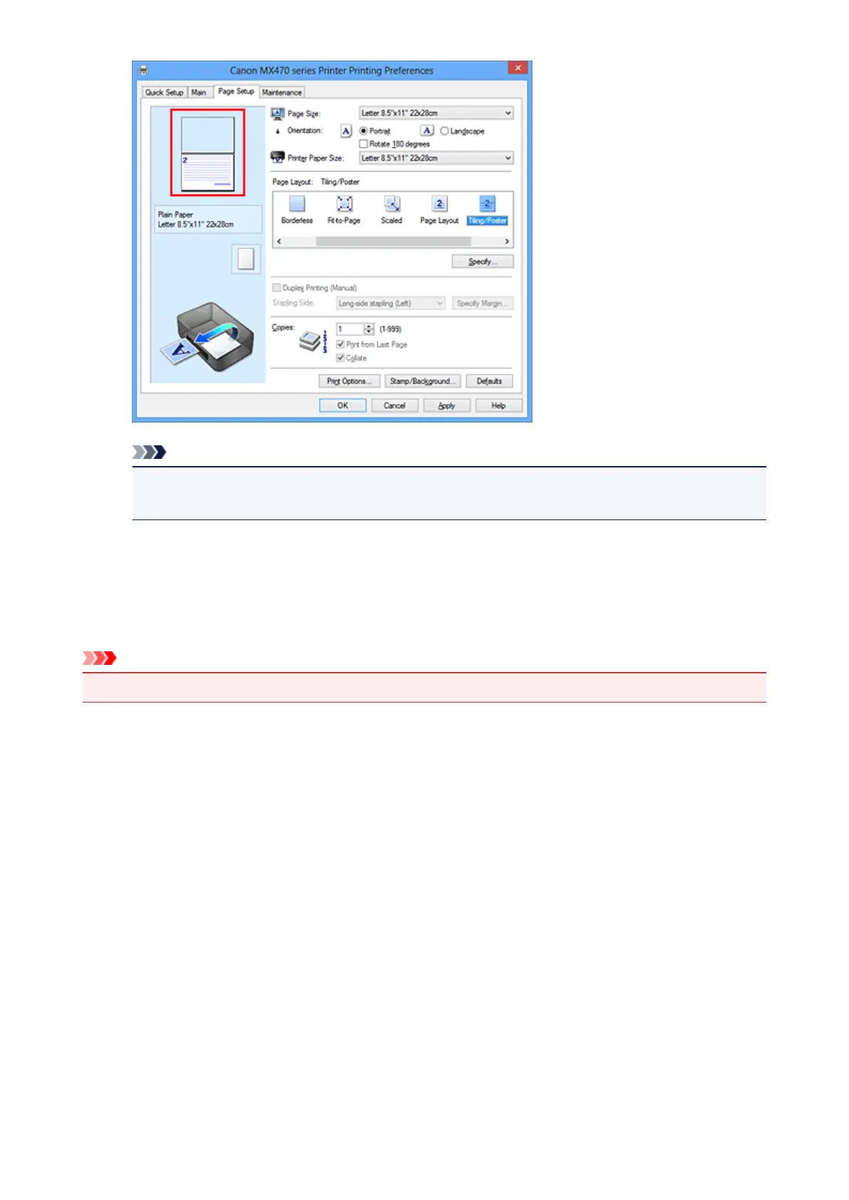 • Since tiling/poster printing enlarges the document when printing it, the print results may become coarse.