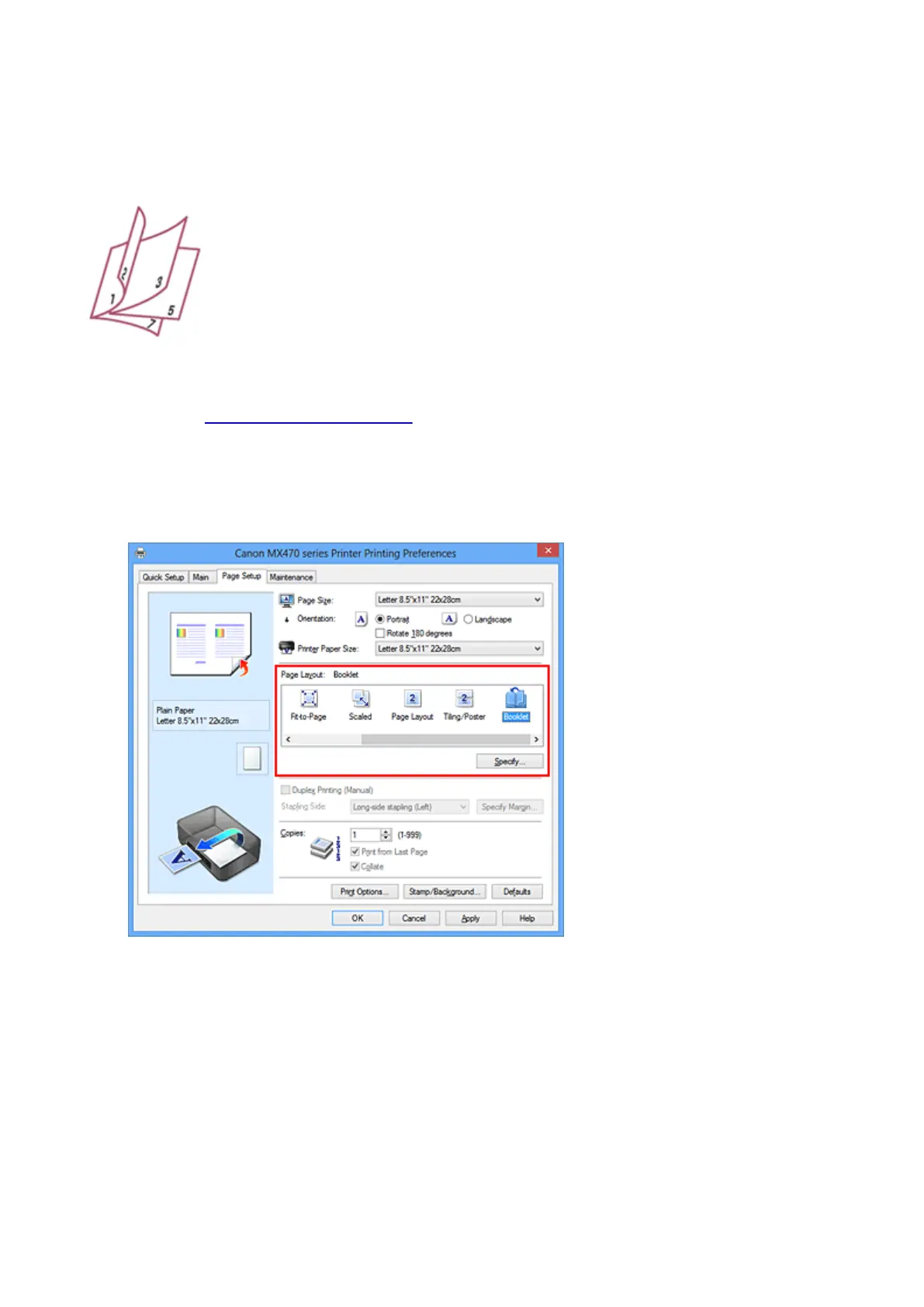 The procedure for performing booklet printing is as follows:
