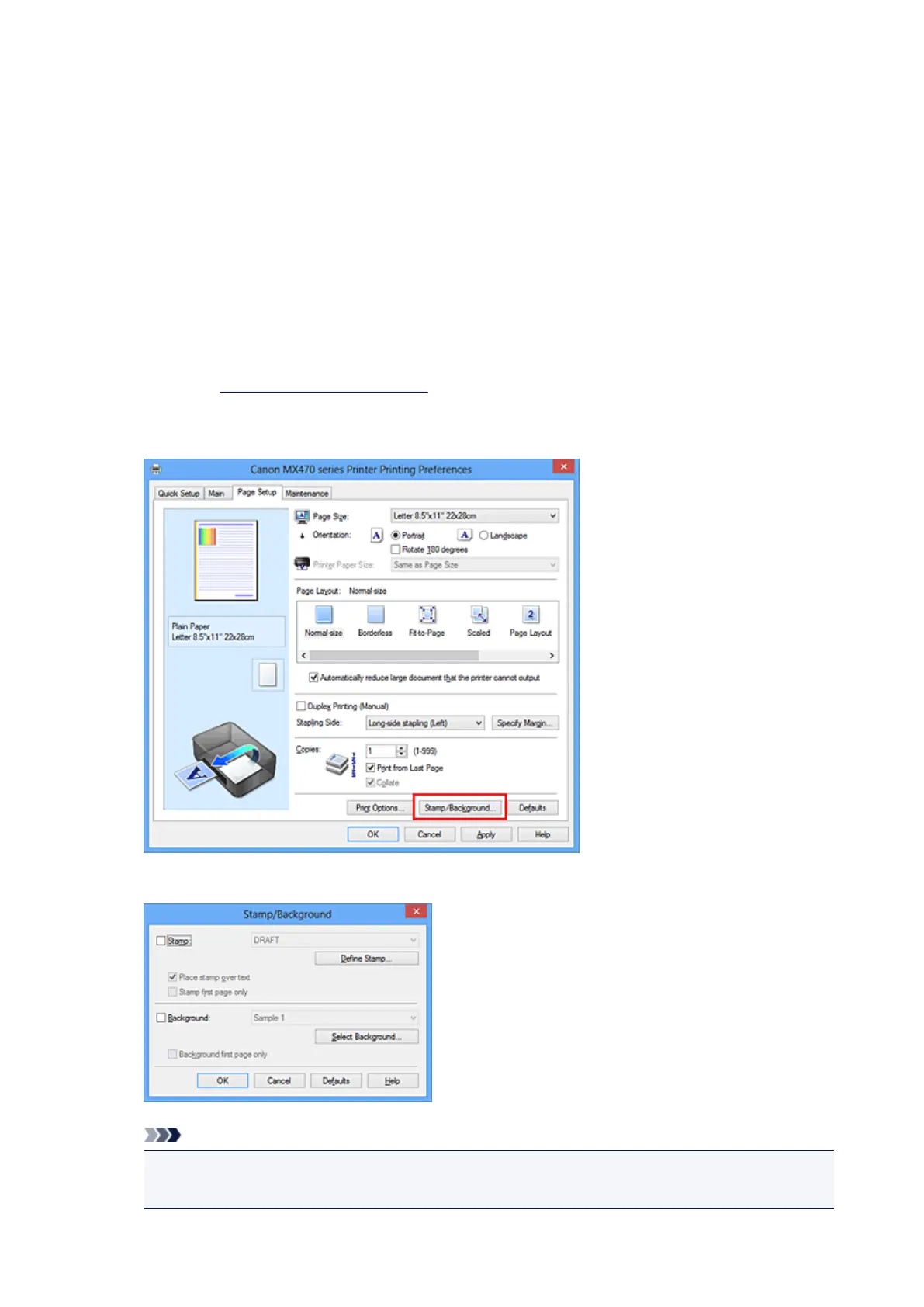 Stamp or Background may be unavailable when certain printer drivers or operating environments are used.