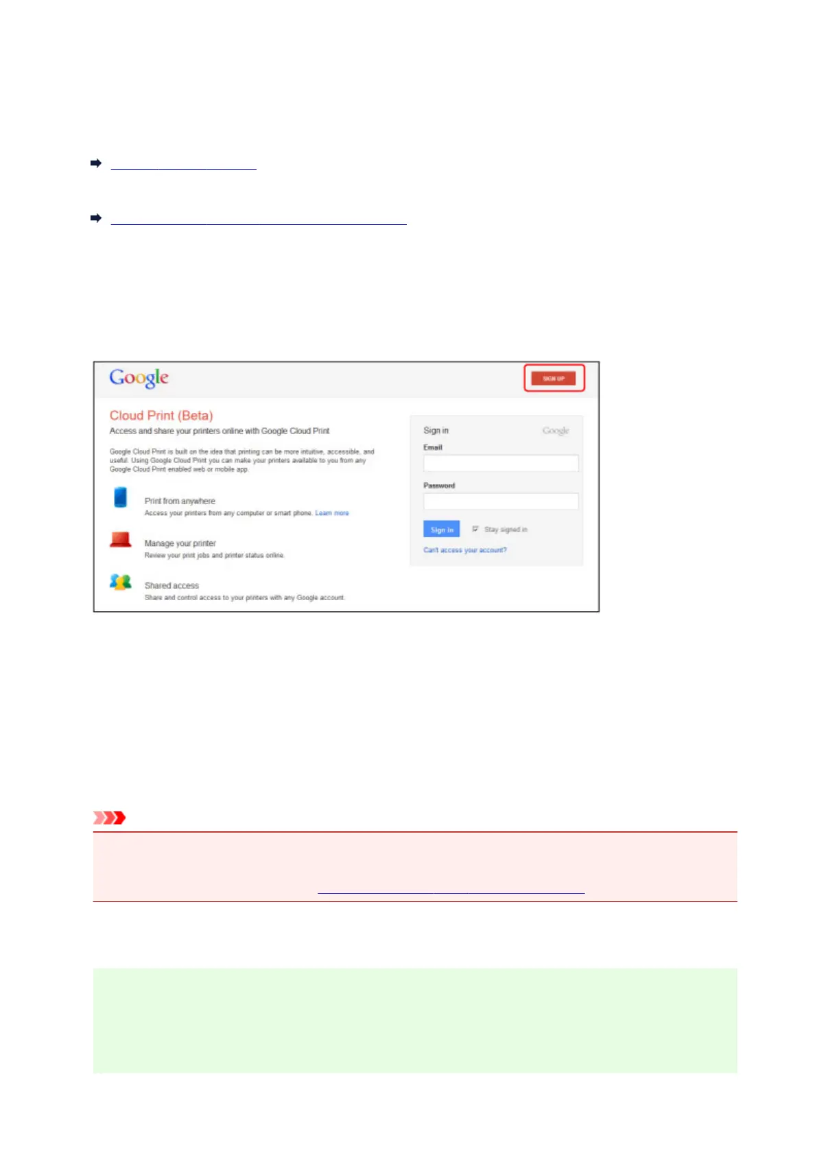 To print with Google Cloud Print, you need to get Google account and register the machine with Google