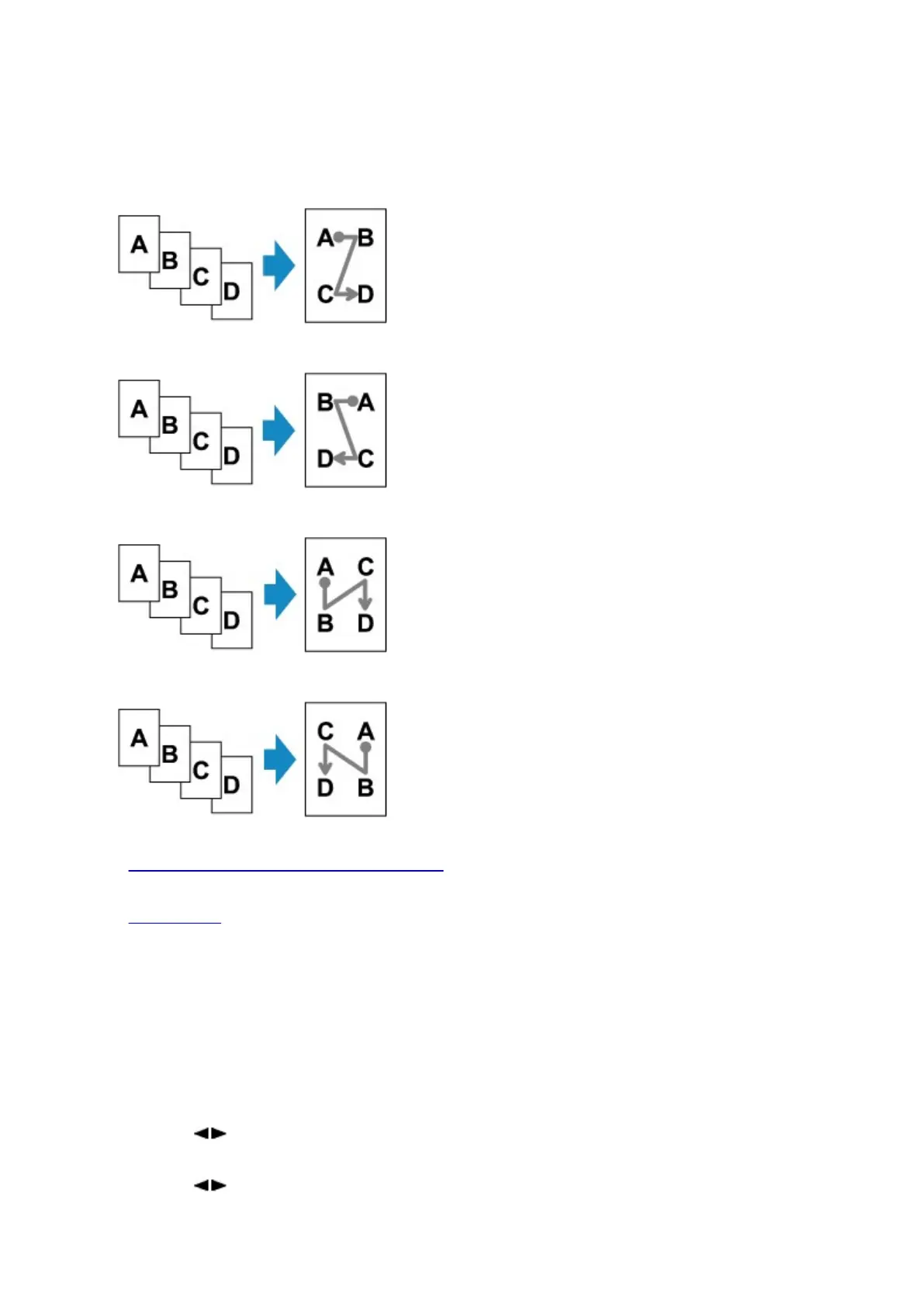 You can copy four original pages onto a single sheet of paper by reducing each image. Four different