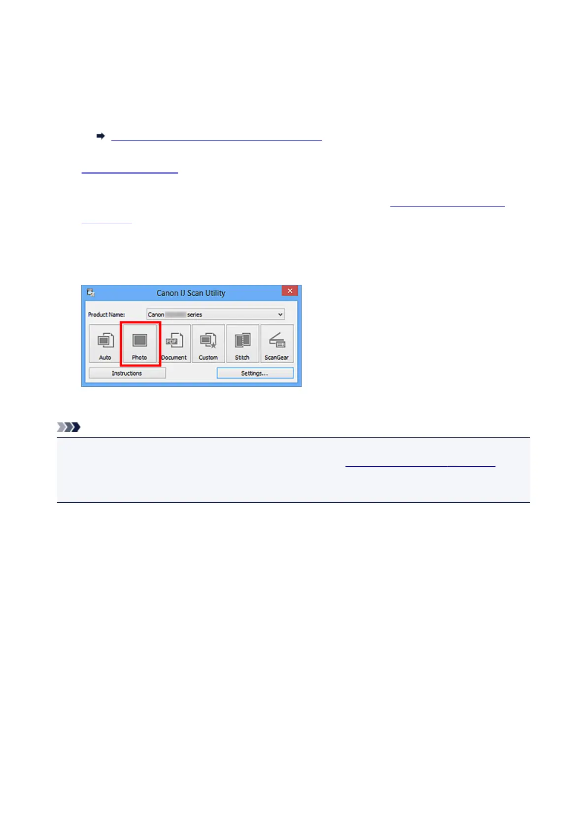 displayed by clicking Settings.... In the Settings (Photo Scan) dialog box, you can also make