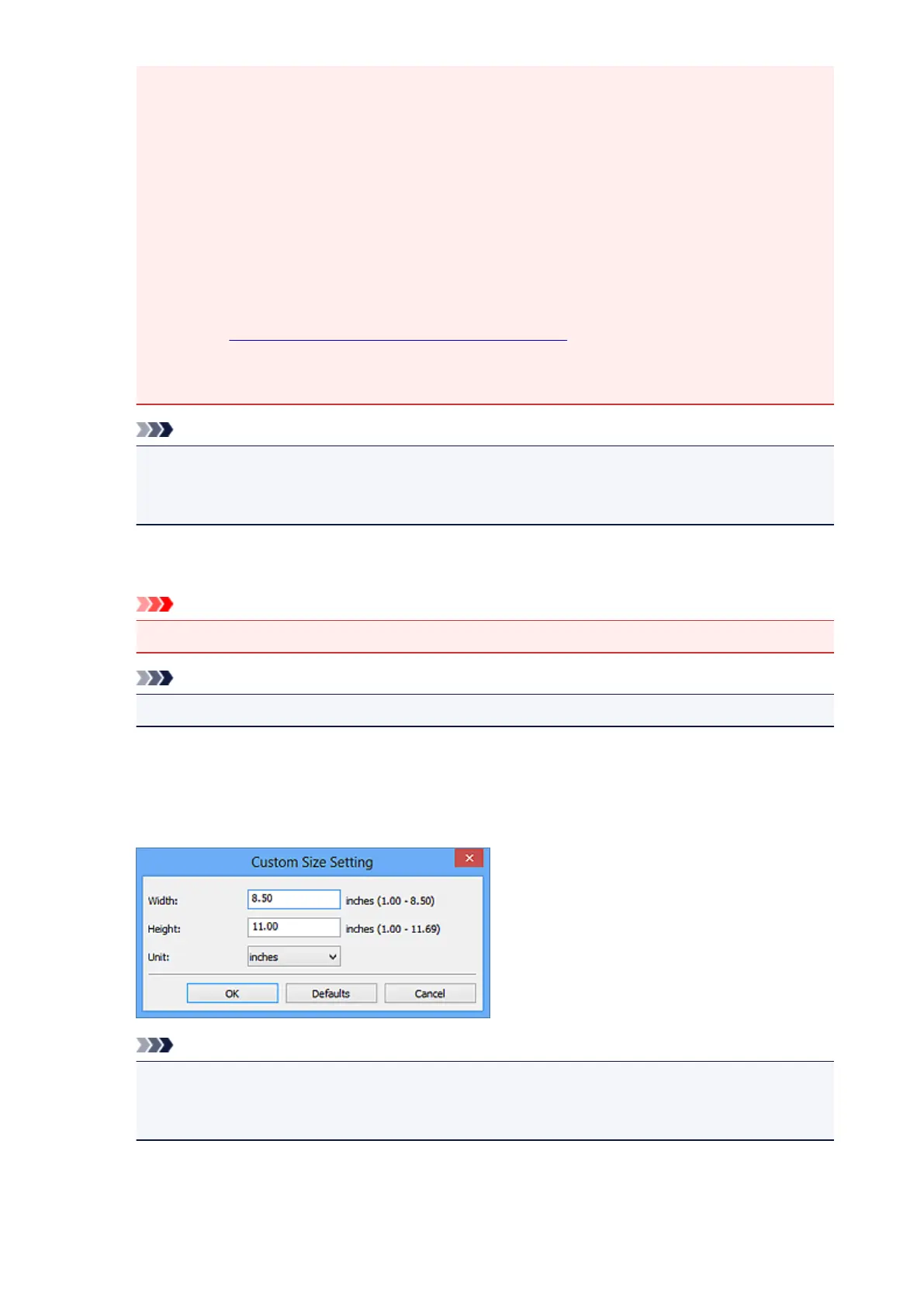 When you select Custom, a screen in which you can specify the paper size appears. Select a Unit,
