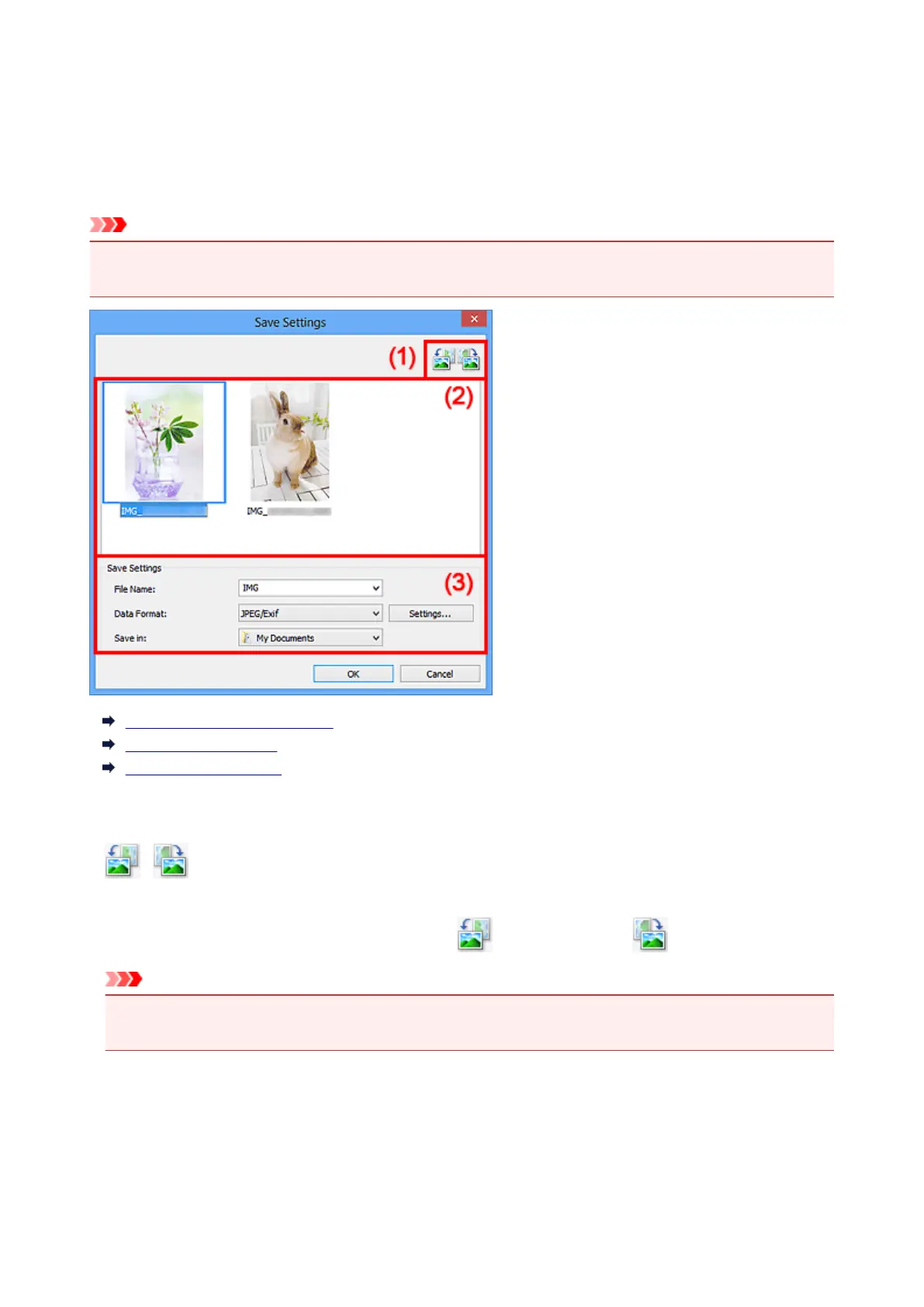 • After scanning from My Image Garden or the operation panel, the Save Settings dialog box does not