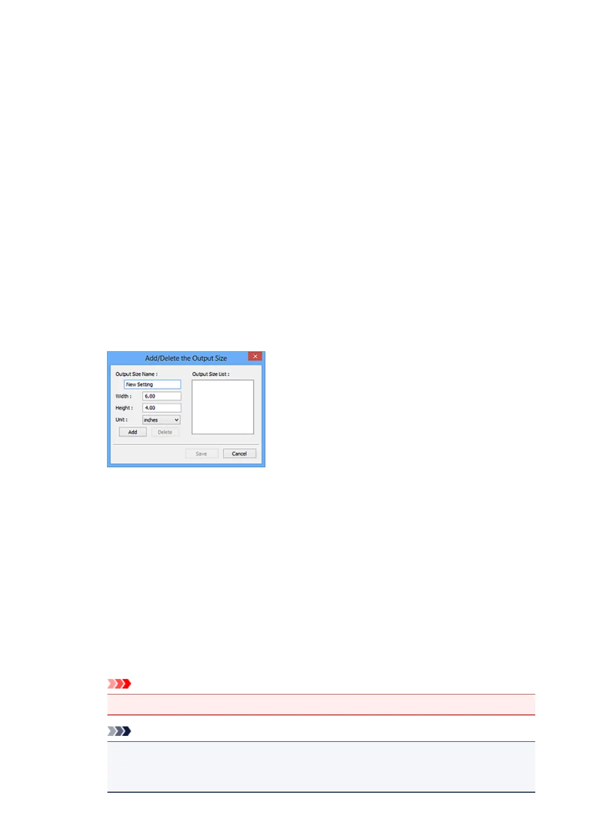 them at one time. Saved items will be registered to the Output Size list and can be selected,
