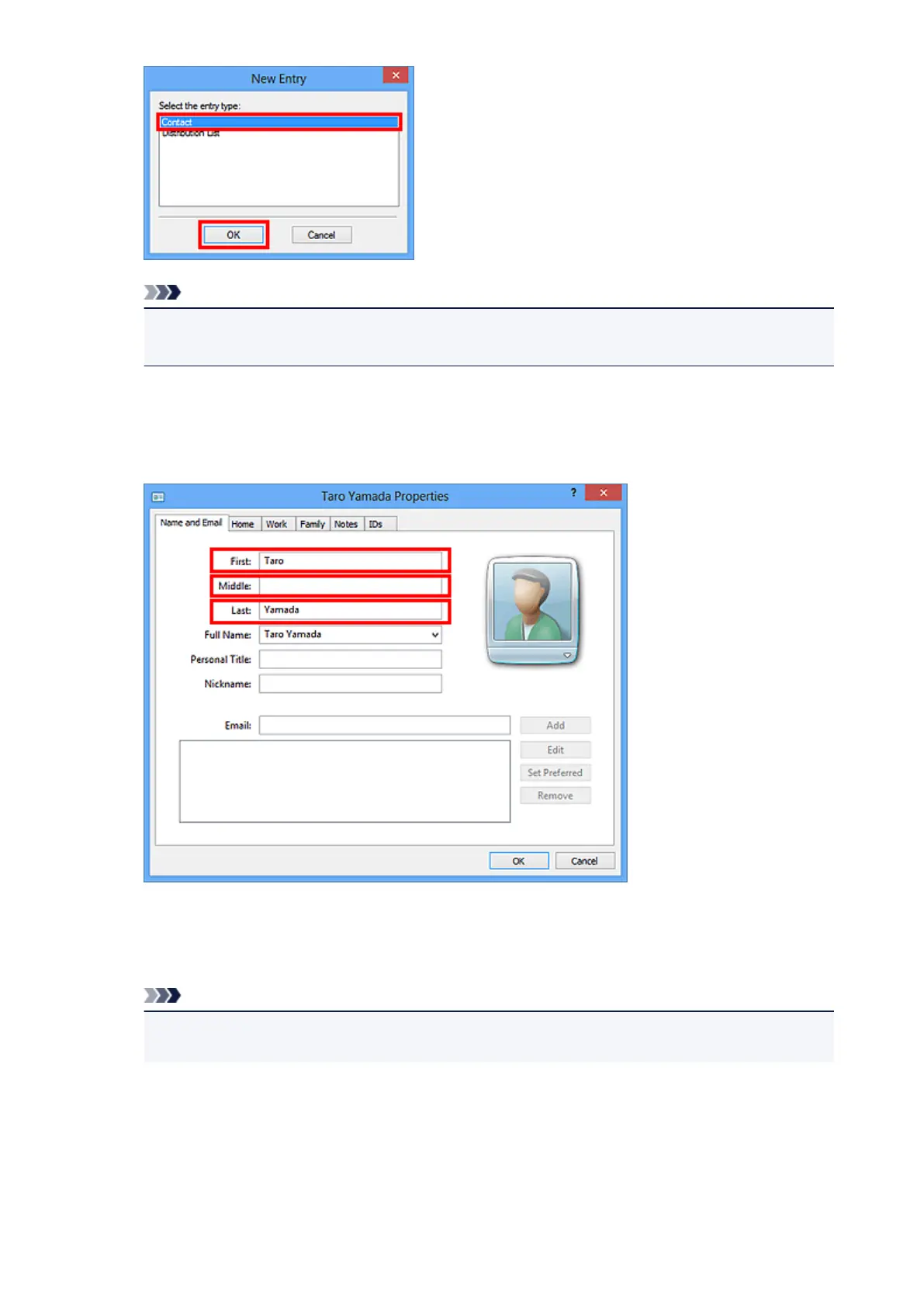 Enter the First, Middle, and Last of the contact in the Name and E-mail tab (Name tab