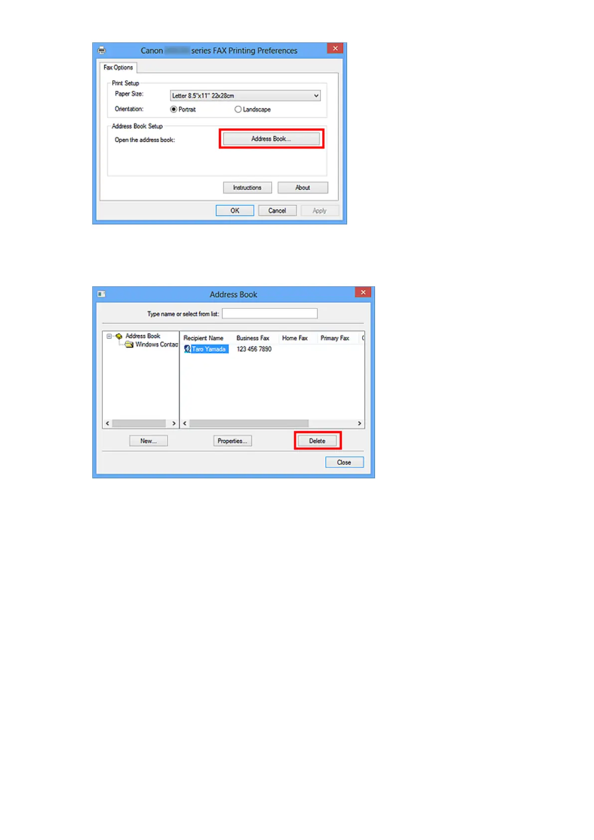 Select the recipient you want to delete from the Address Book dialog box, then click