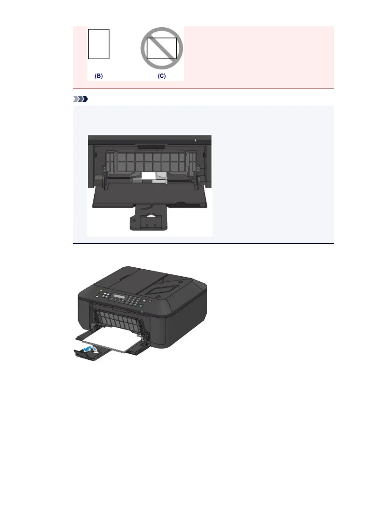 • Load small size paper, such as 4" x 6" (10 x 15 cm), by pushing it in all the way to the back of the