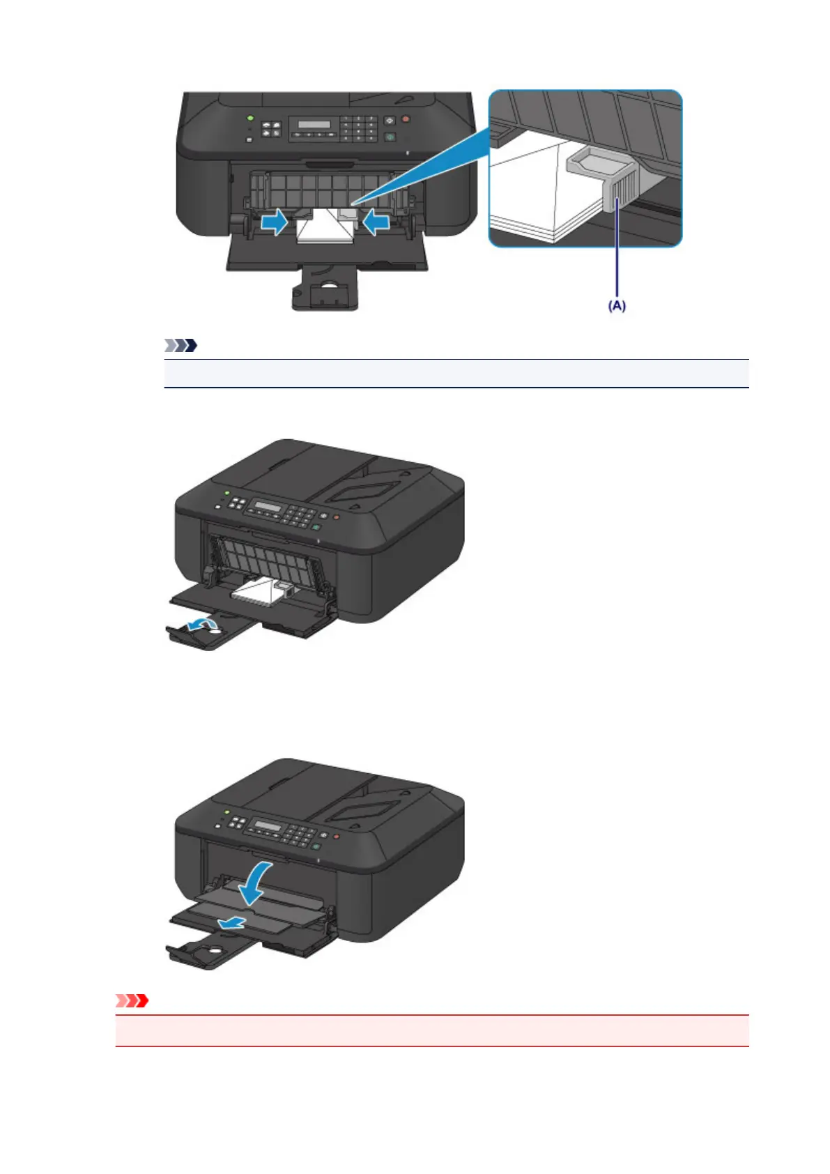 • Do not overload envelopes by stacking until the top of the stack touches the paper guides.