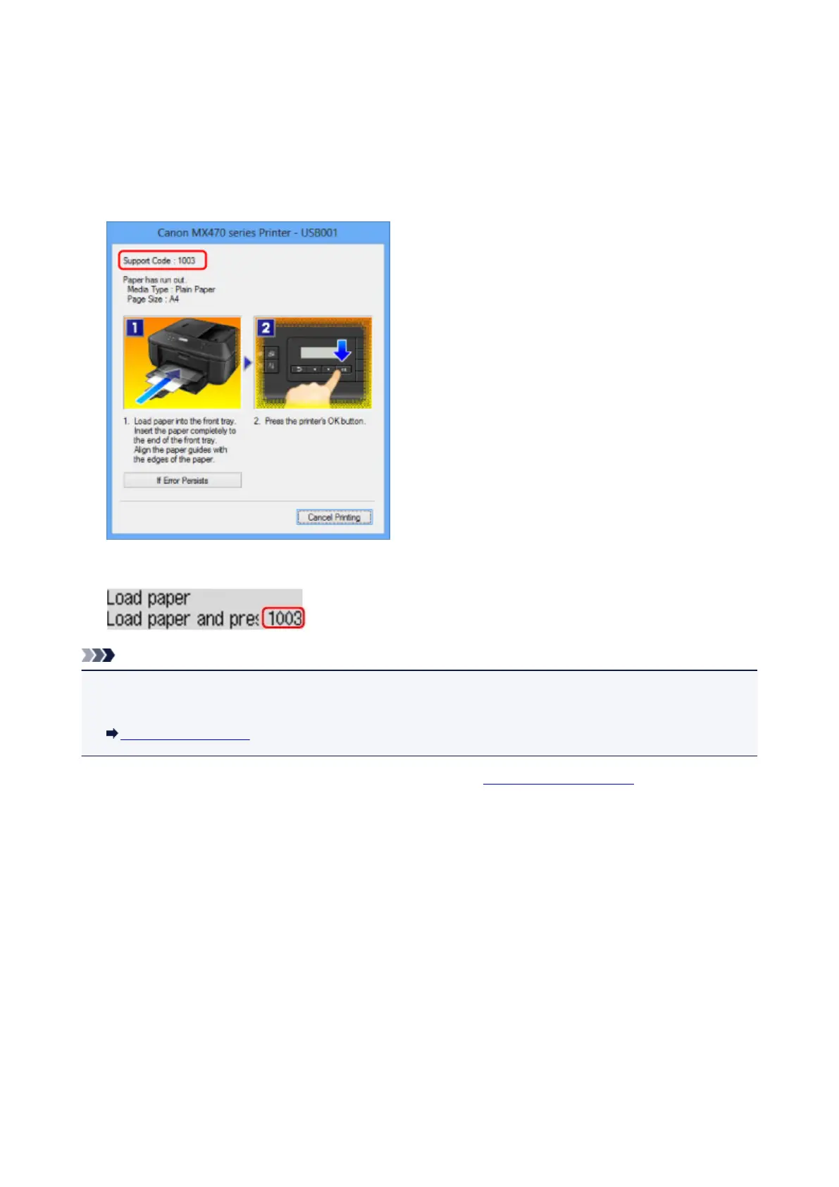 When an error occurs, a Support Code (error number) is displayed on the computer screen or the LCD.