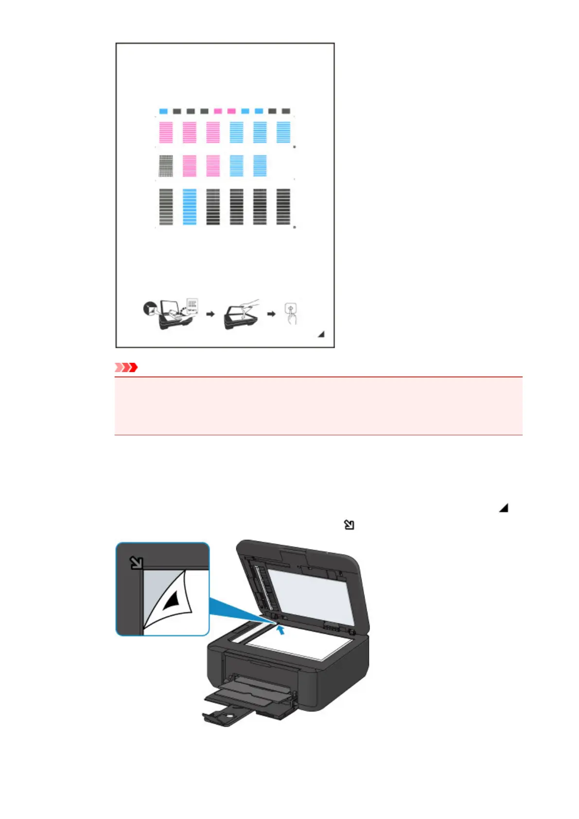 Load the print head alignment sheet WITH THE PRINTED SIDE FACING DOWN and align the mark on