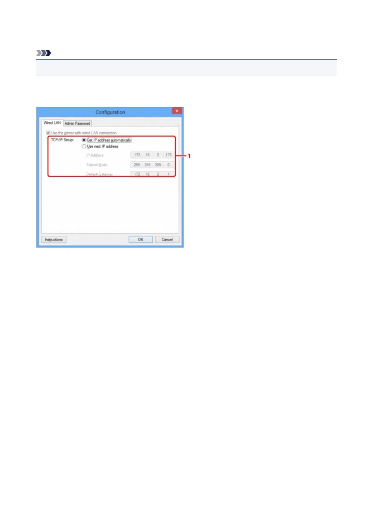 Sets the IP address of the printer to be used over the LAN. Specify a value appropriate for your network