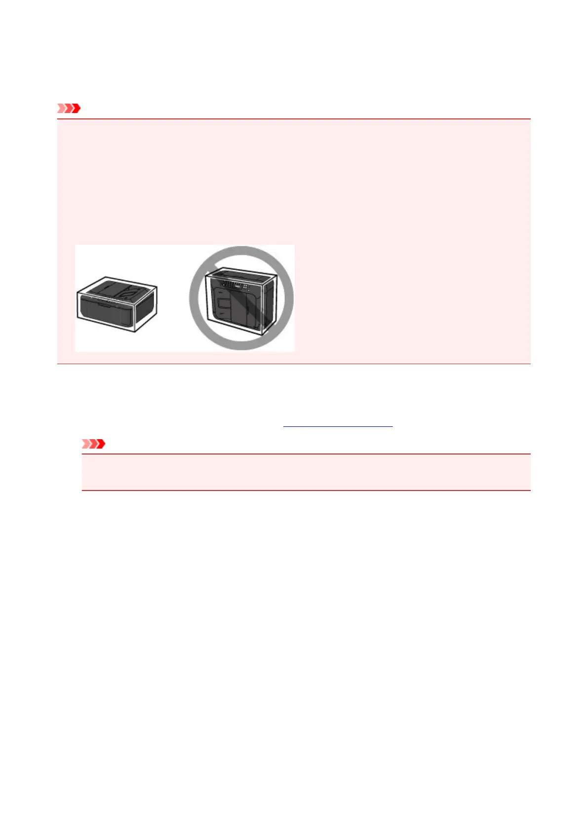 • After packing, do not tilt the box containing the machine or turn it on its side or upside down. Doing so