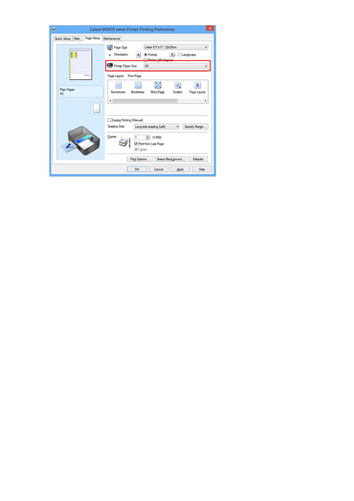 When you execute print, the document will be enlarged or reduced to fit to the page size.