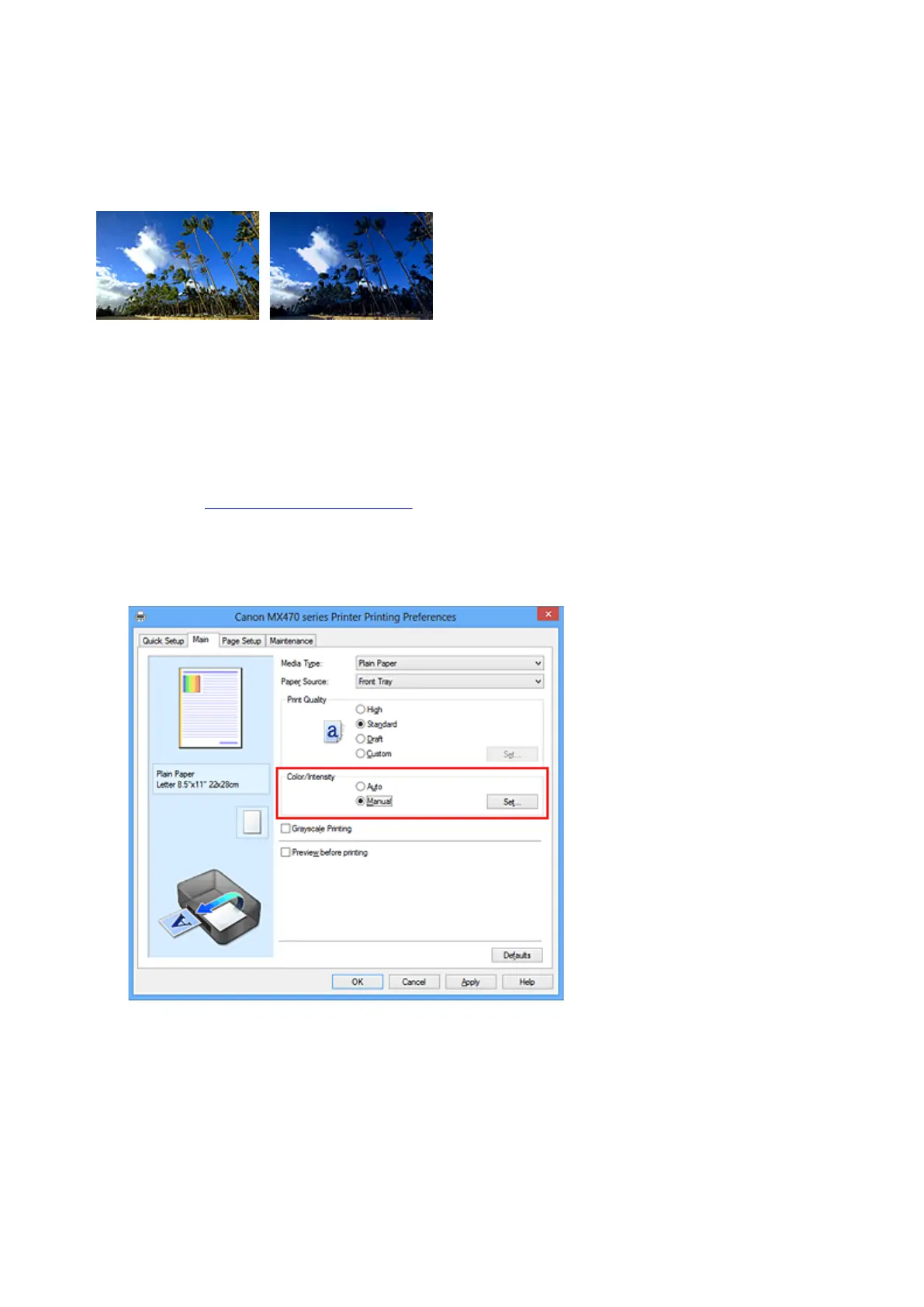 You can also set intensity on the Quick Setup tab by choosing Photo Printing under Commonly Used