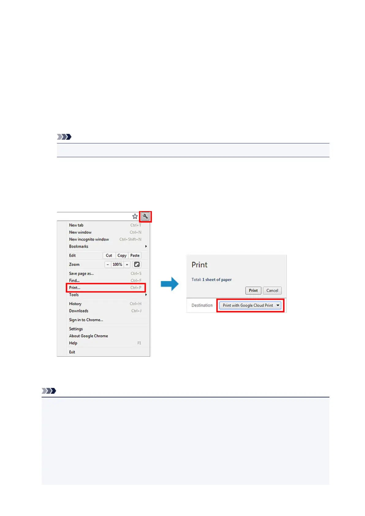 • While printing with Google Cloud Print, the printing may be canceled depending on the machine's