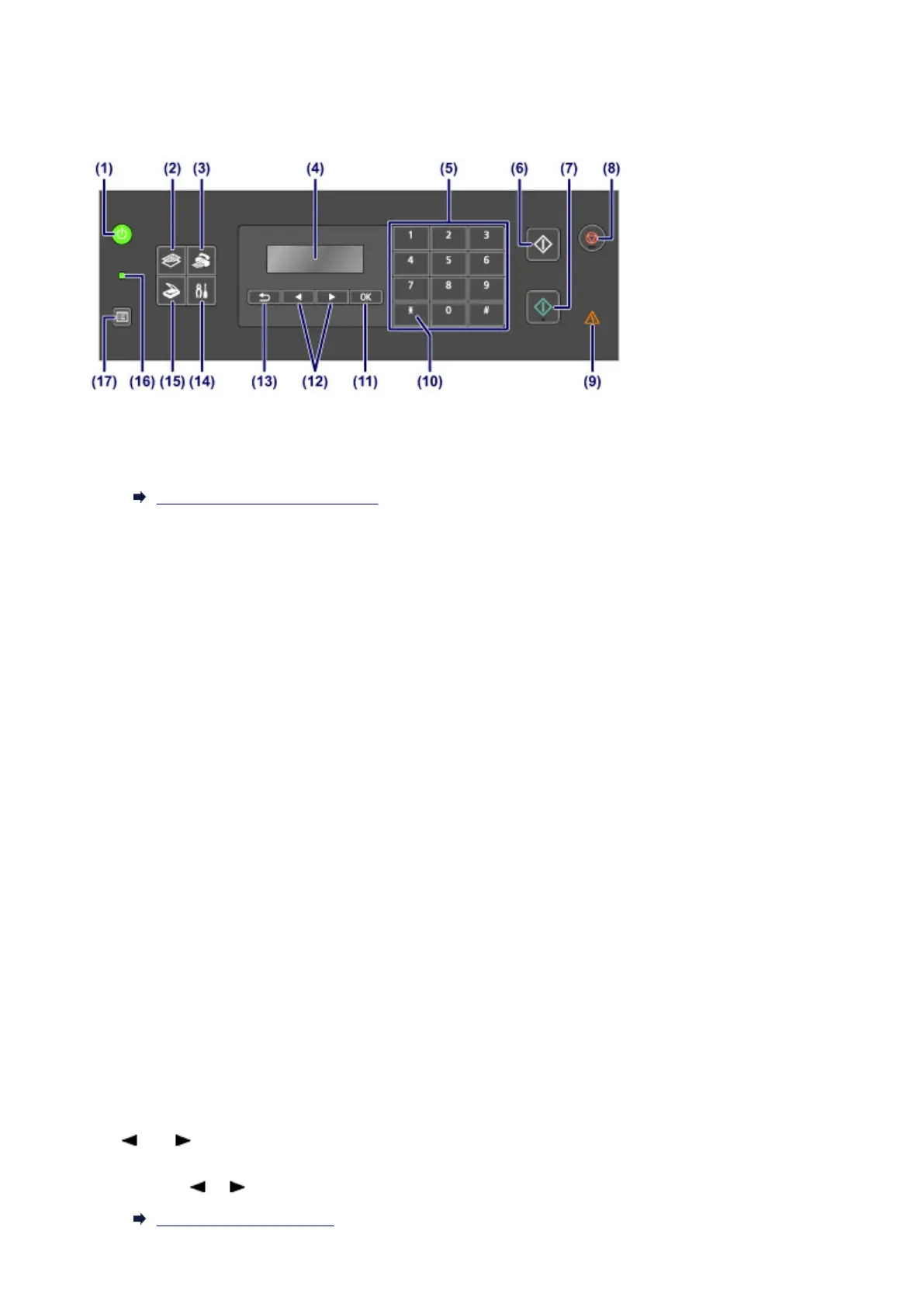 Used to increase/decrease a setting value such as the number of copies, and select a menu or setting