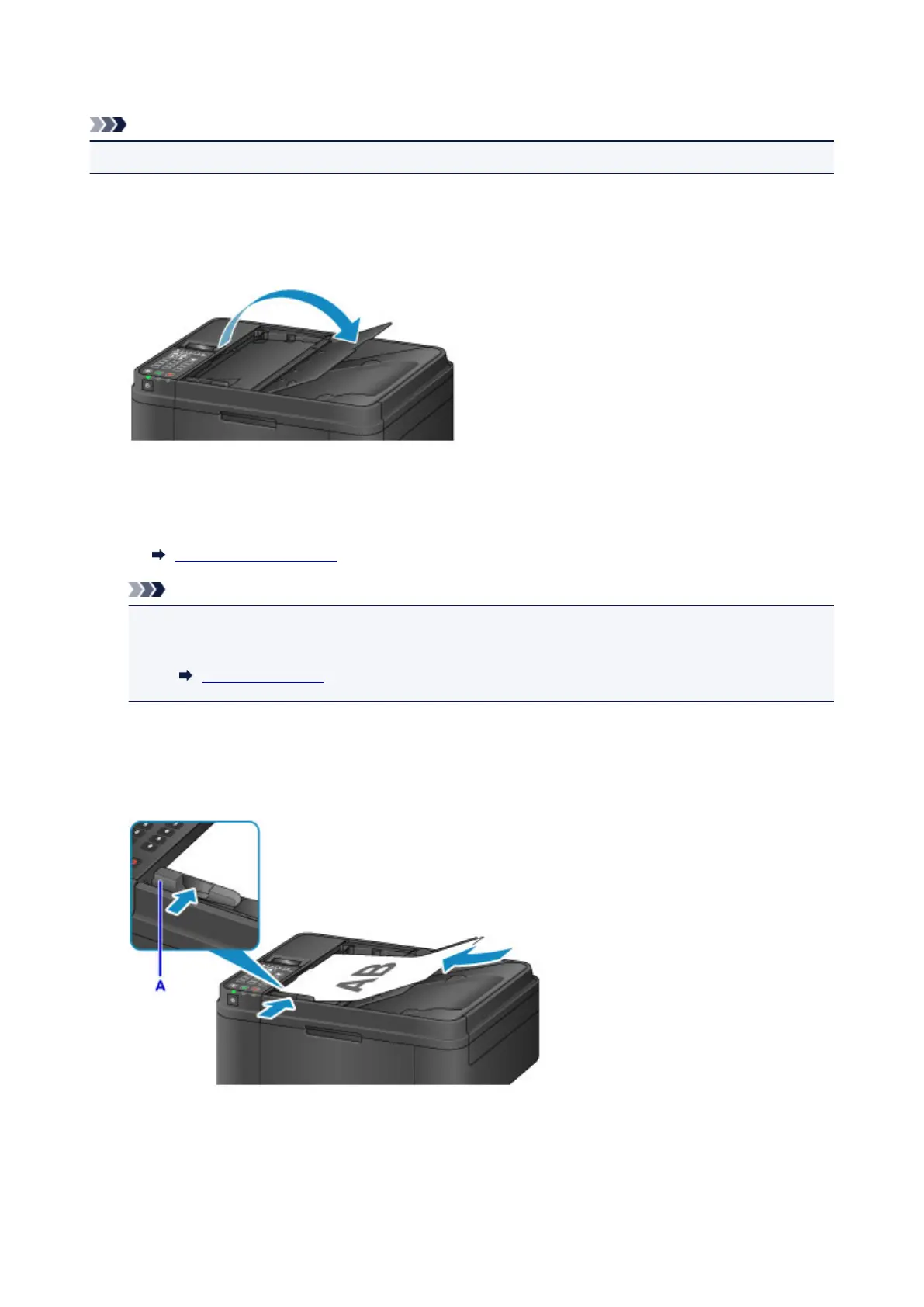 Adjust the document guide (A) at the front of the machine to match the width of the