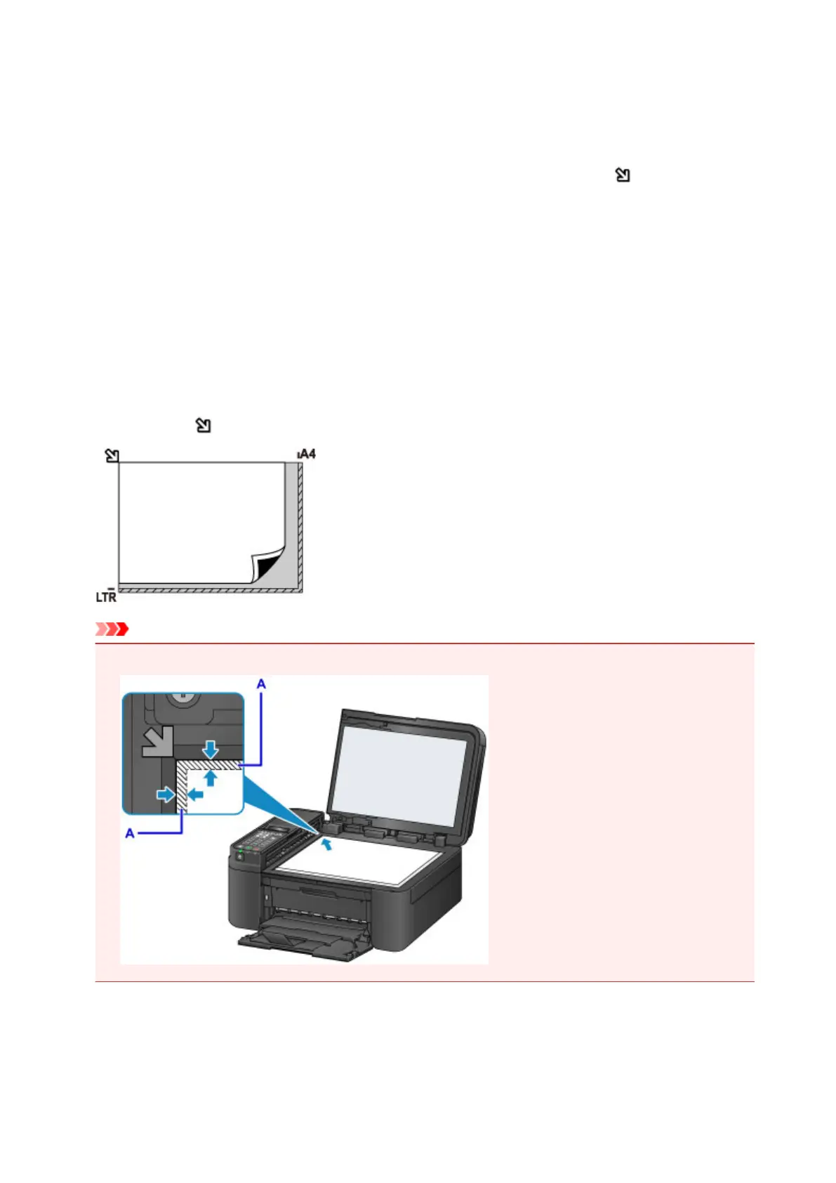 • The machine cannot scan the striped area (A) (0.04 inch (1 mm) from the edges of the platen glass).