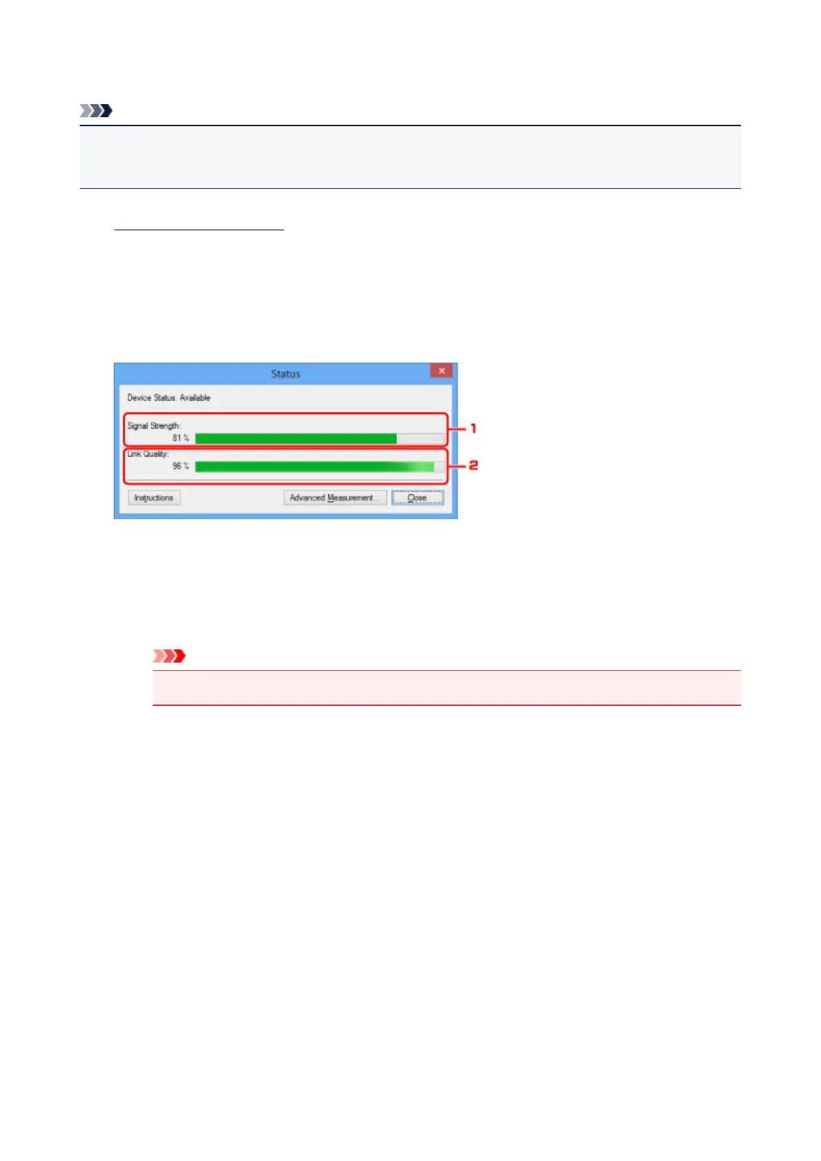• If the indicated value is low, move your printer closer to the wireless network device.