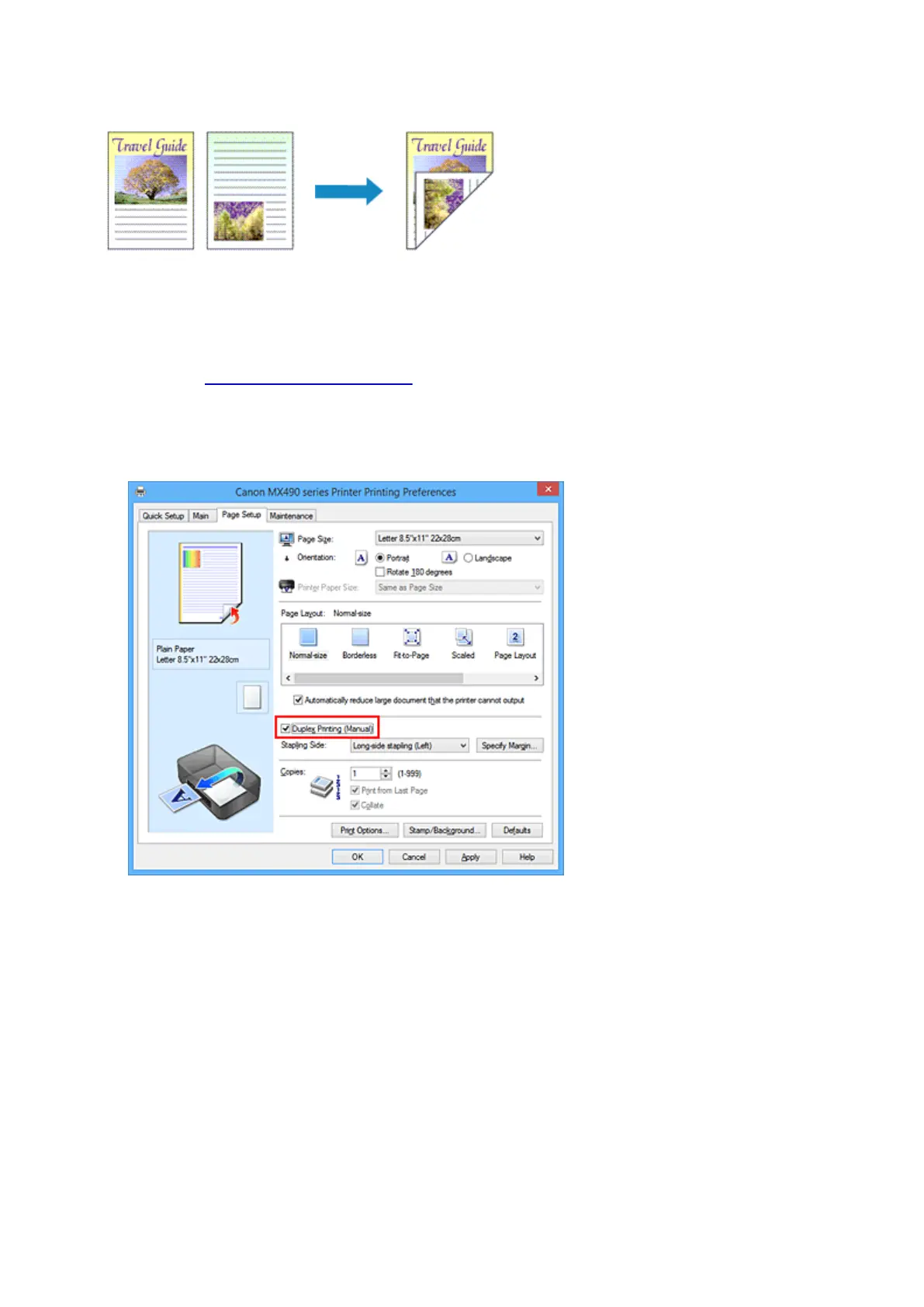 Check the Duplex Printing (Manual) check box on the Page Setup tab.