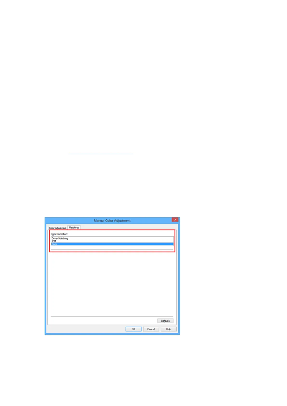 To use this printing method, use your application software to select color management items and specify