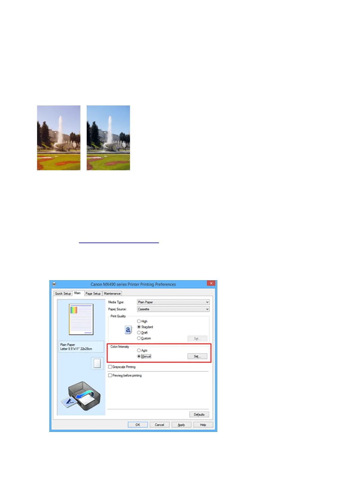On the Main tab, select Manual for Color/Intensity, and click Set....