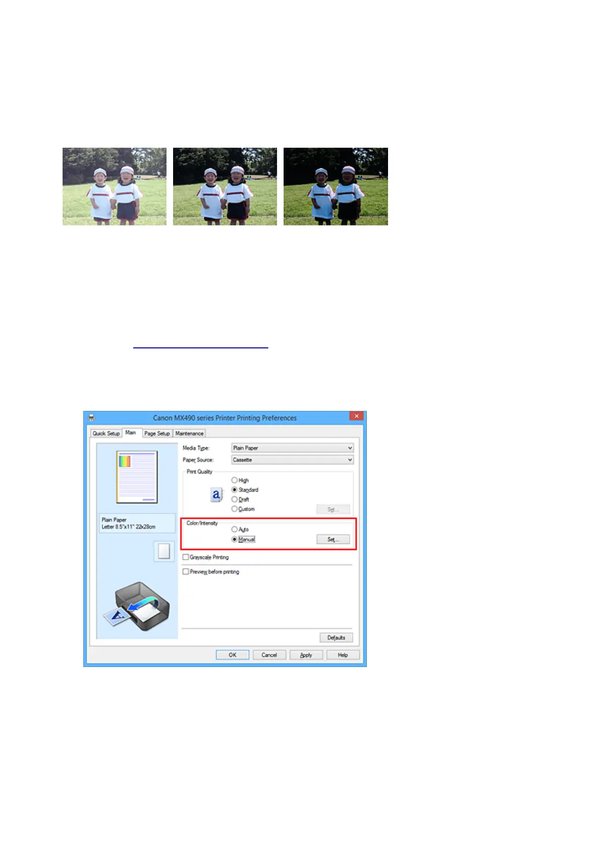 On the Main tab, select Manual for Color/Intensity, and click Set....