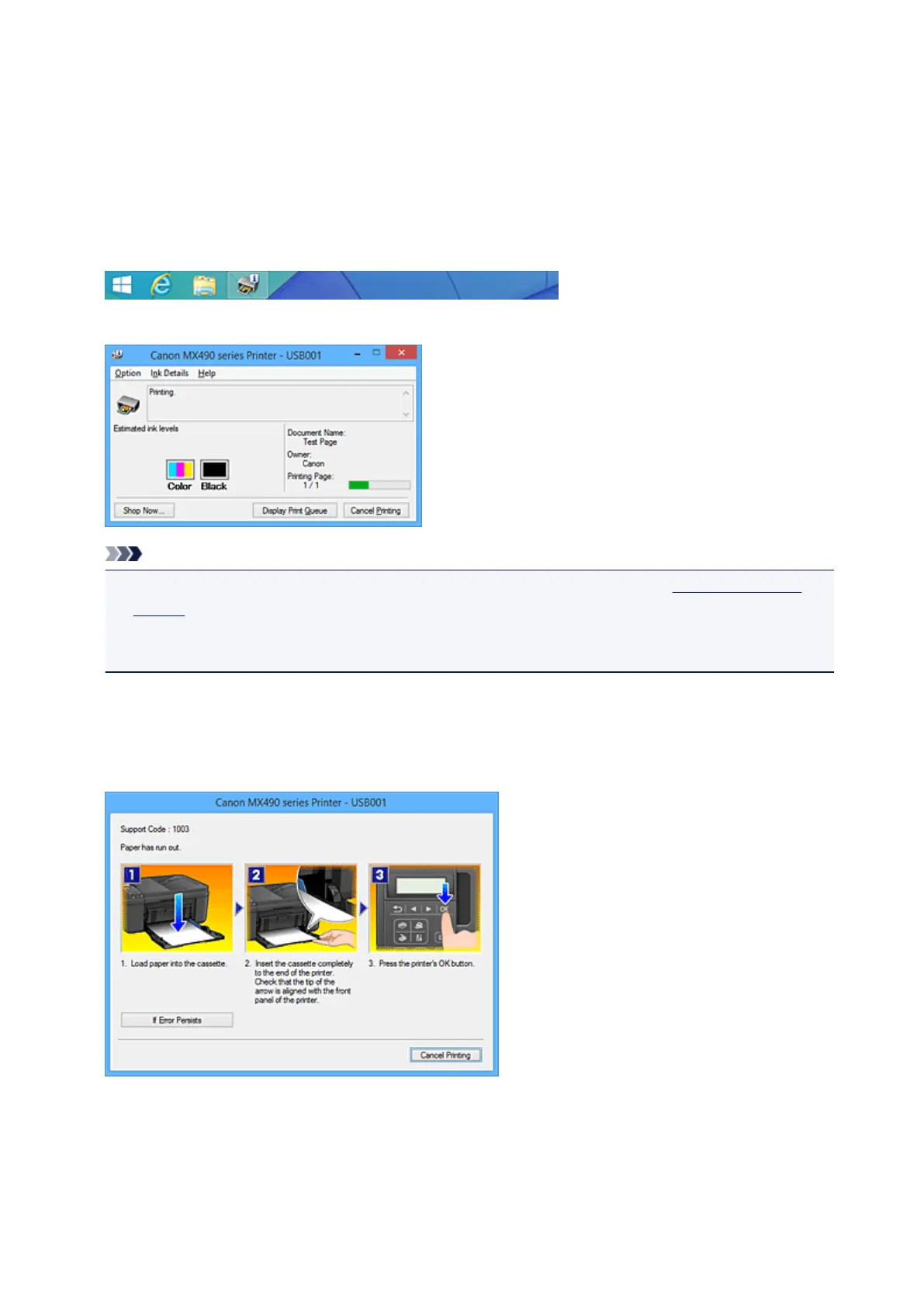 launched, the Canon IJ Status Monitor appears as a button on the task bar.