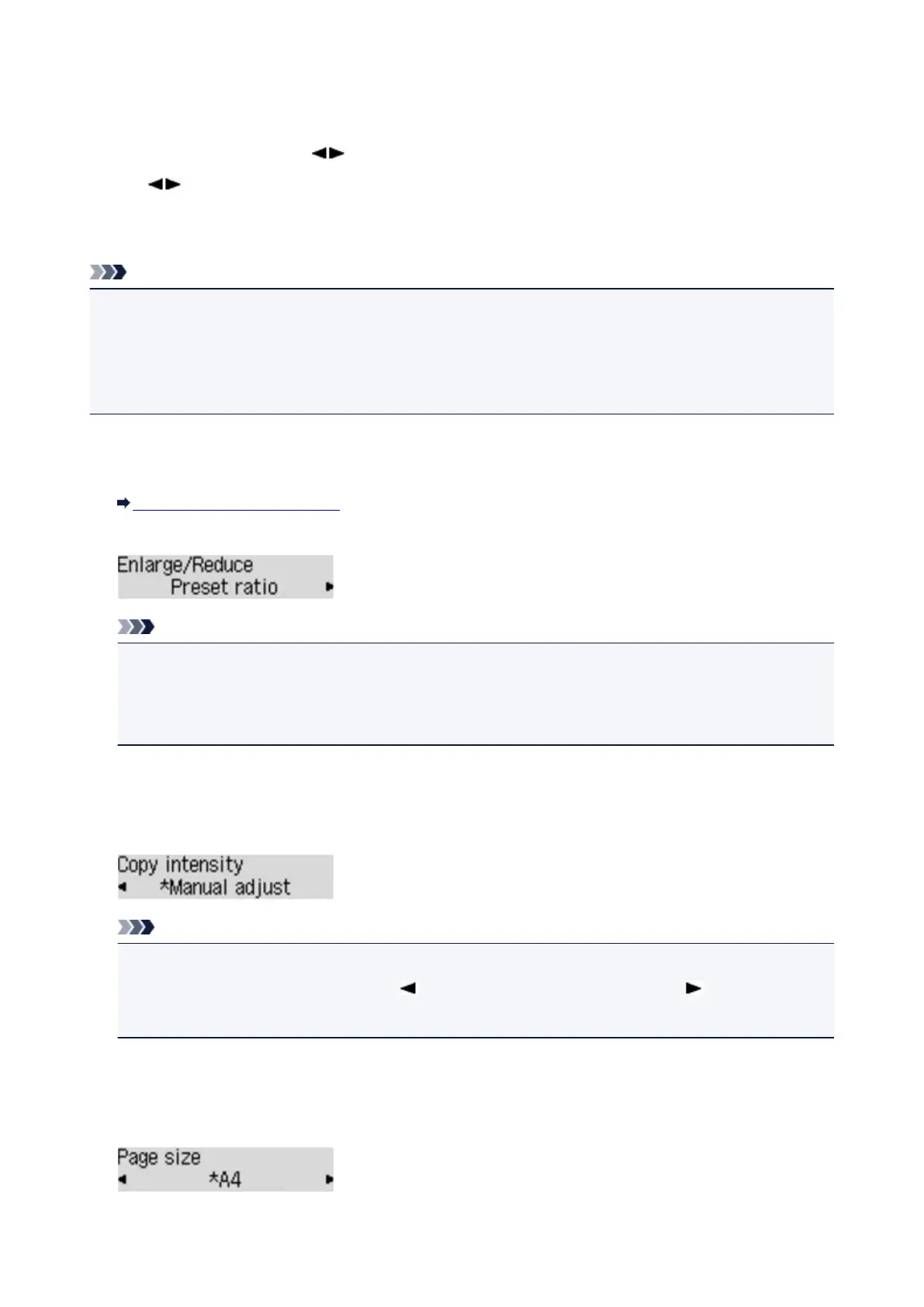 You can change the copy settings such as the page size, media type, and intensity.