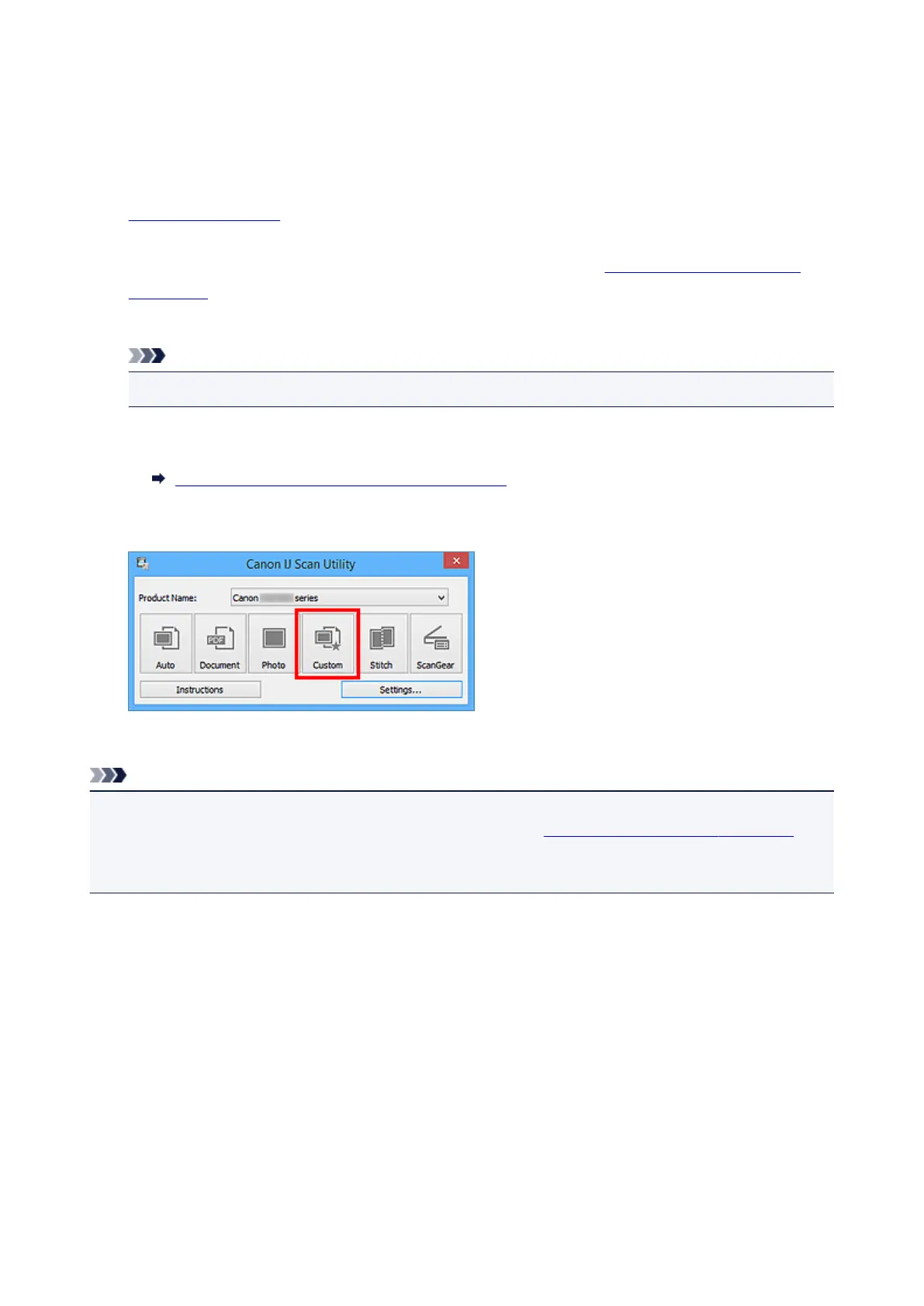 displayed by clicking Settings.... In the Settings (Custom Scan) dialog box, you can also make