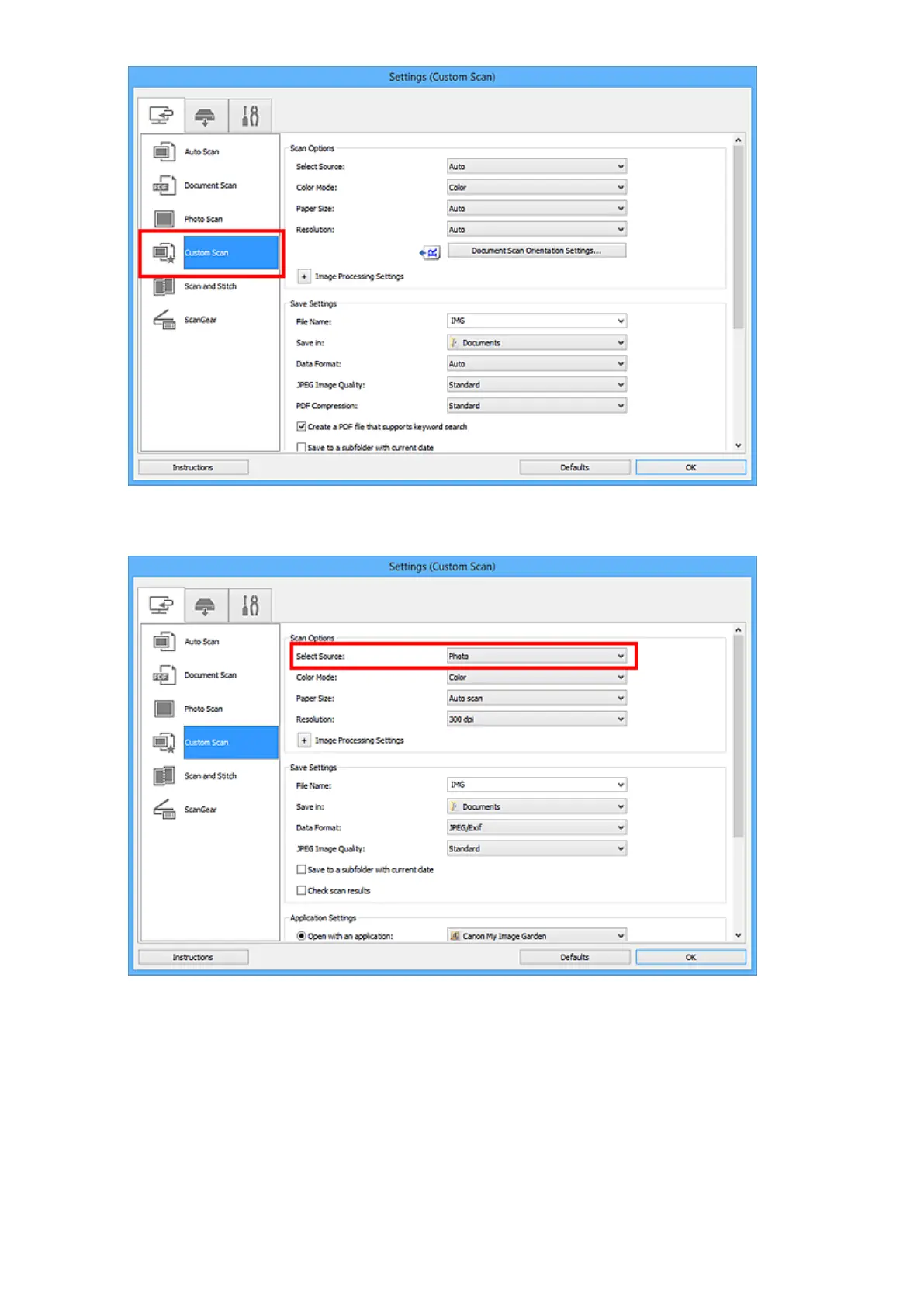 Select Select Source according to the items to be scanned.