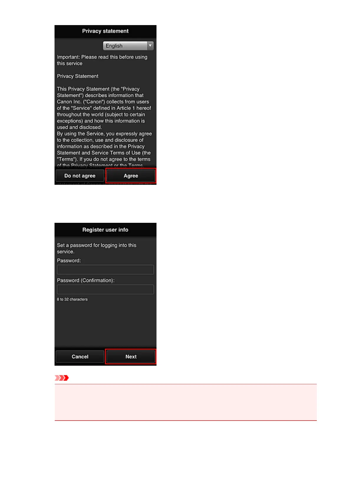 Enter your password for logging in to the Canon Inkjet Cloud Printing Center.