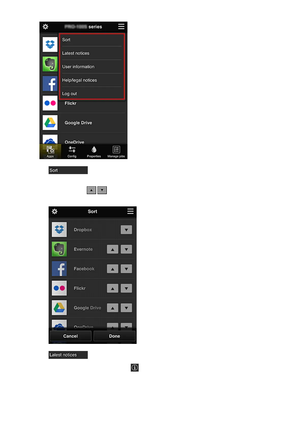 This displays the screen to sort registered apps.