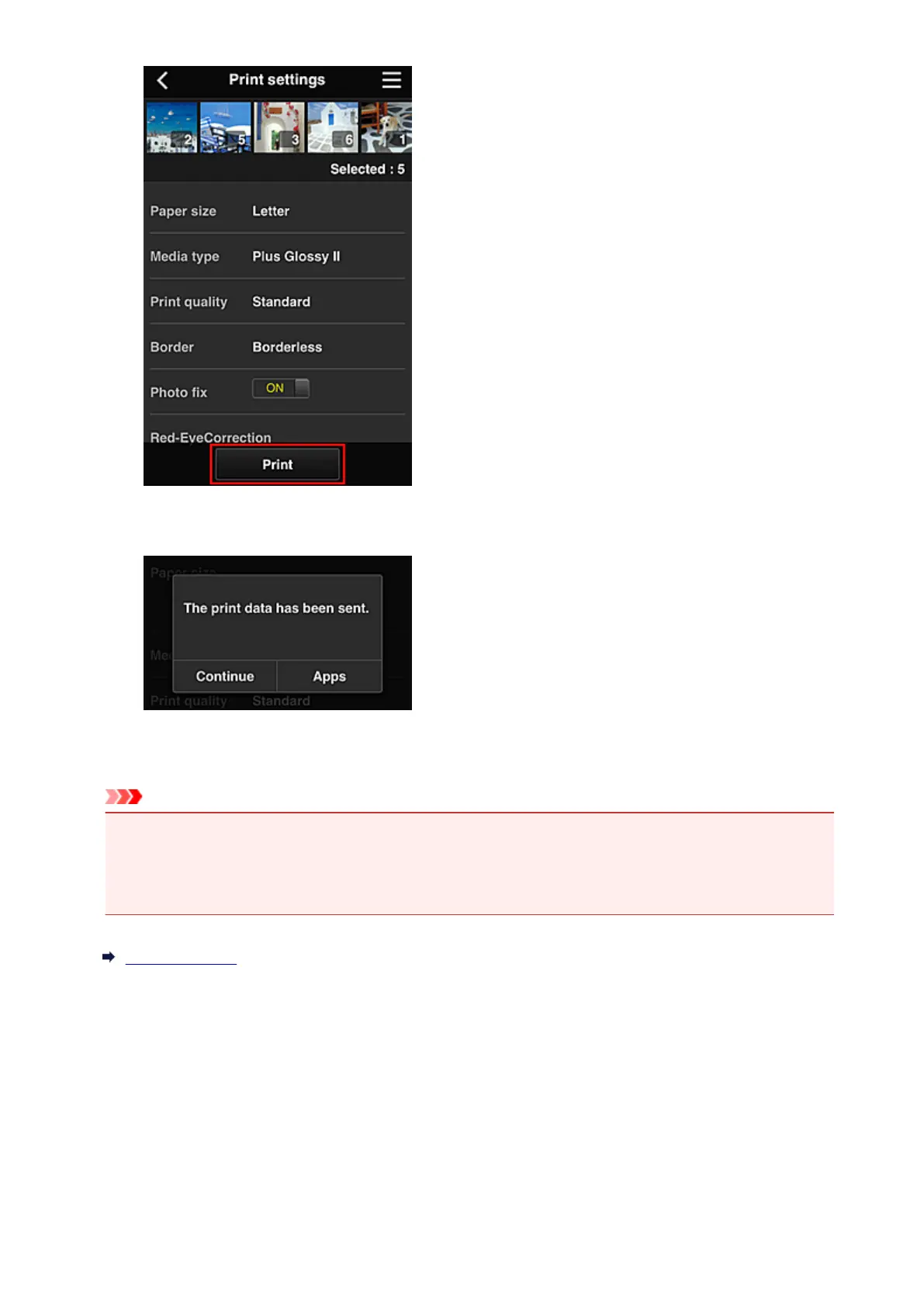 To continue printing, select Continue, and perform the operation from Step 3.