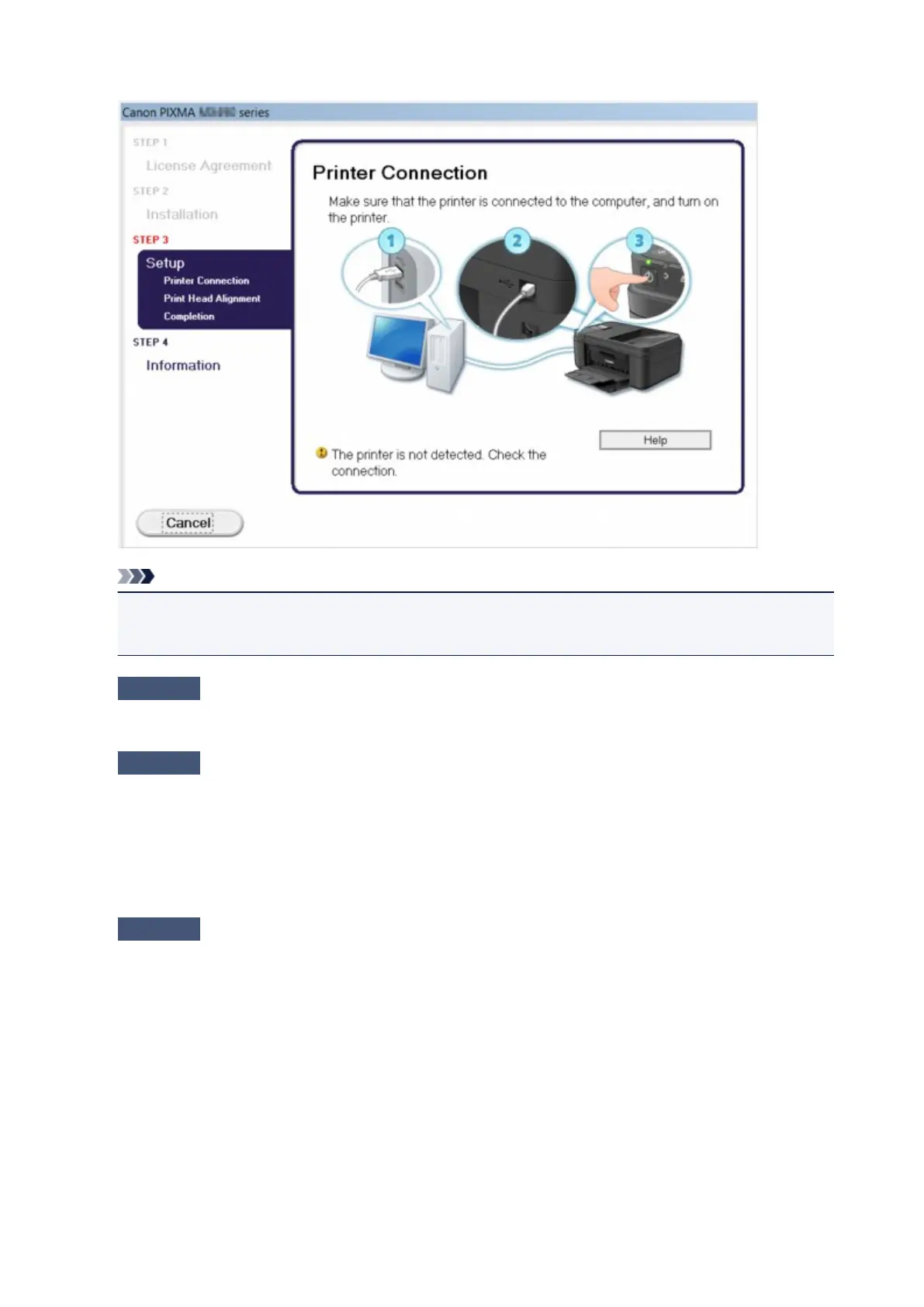 • The printer is not detected. Check the connection. may be displayed depending on the