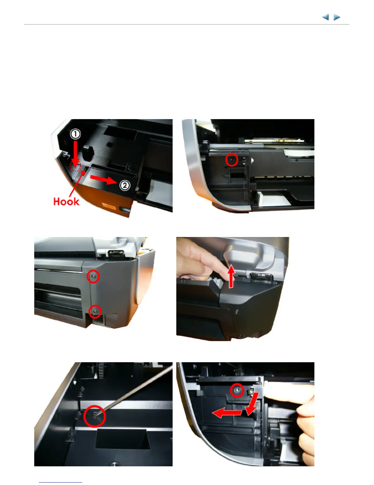 3) Remove 2 screws from rear side. 4) Release the rear hook by pulling it upward.