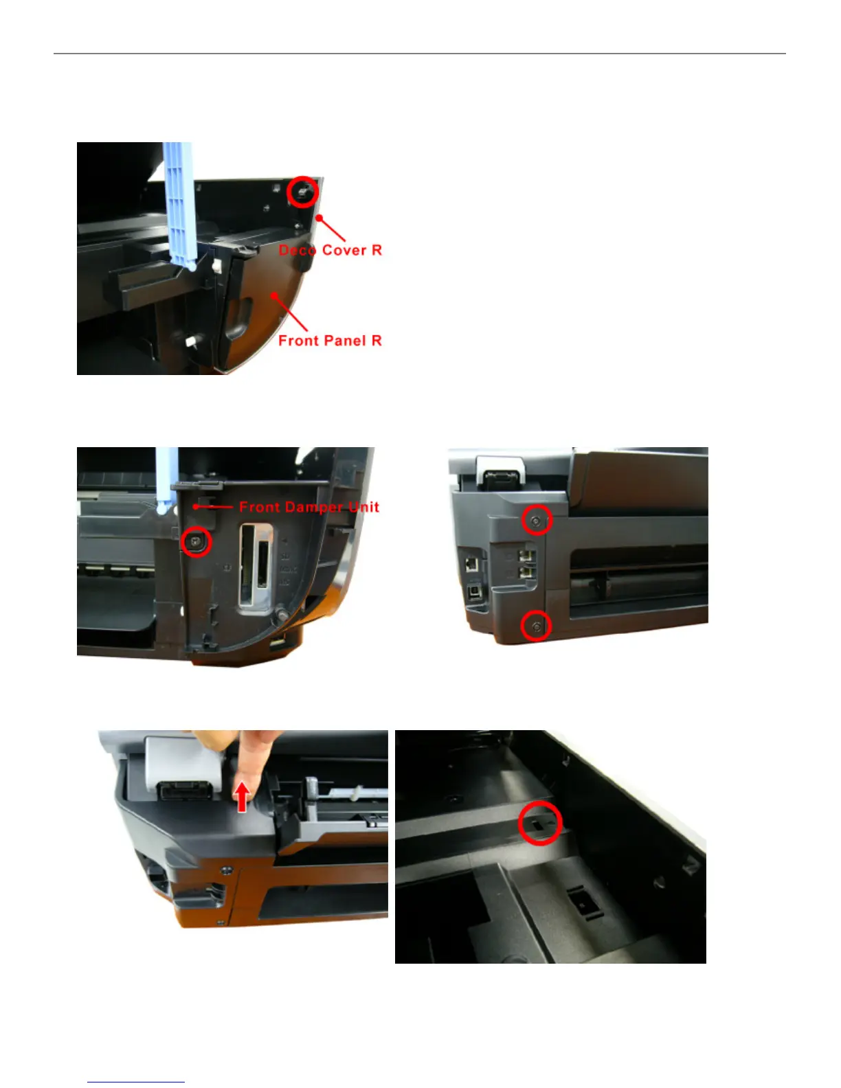 1) Release the hook in the red circle in the photo, and remove the deco cover R.