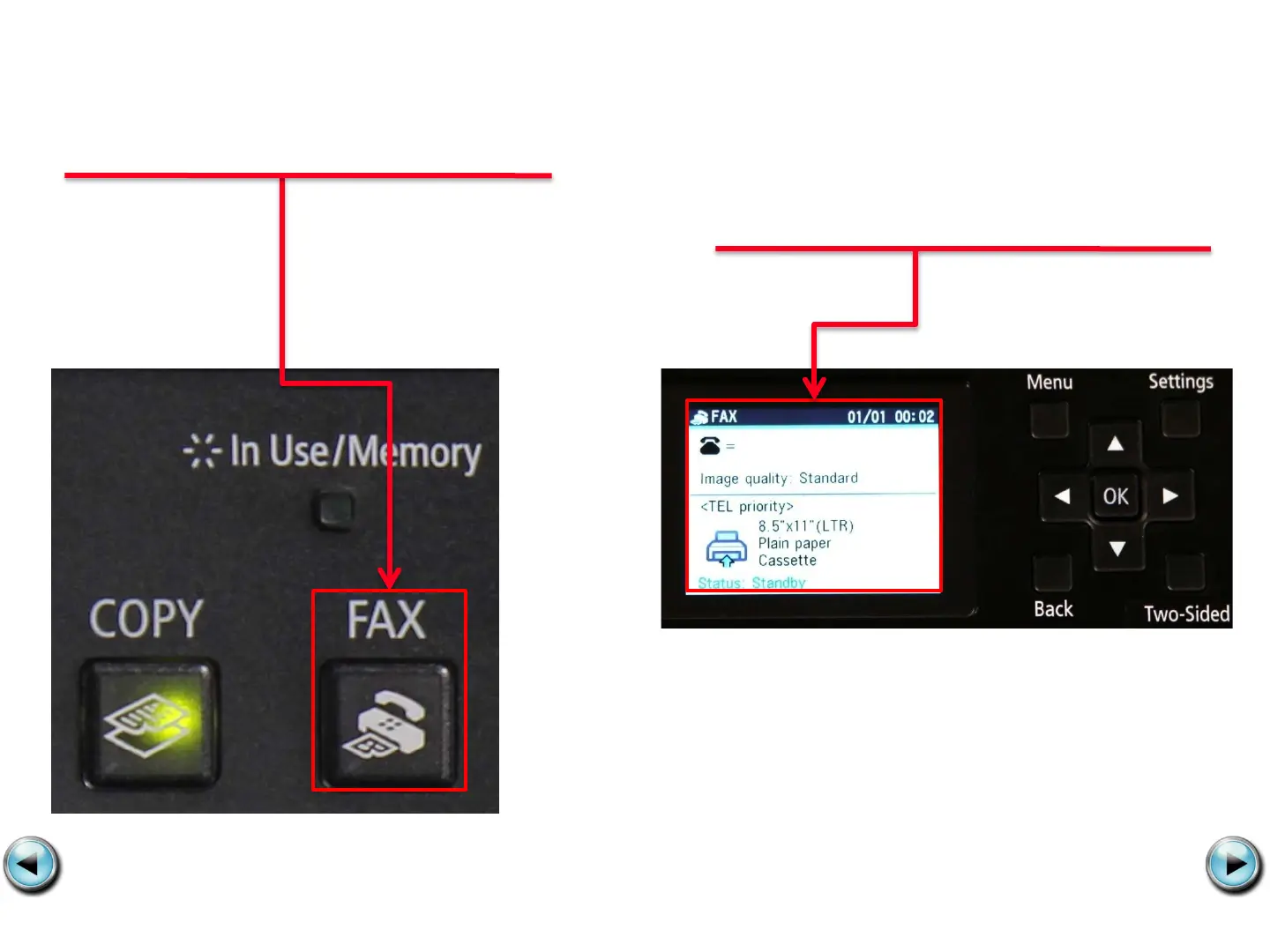 is listed on the fax standby screen.