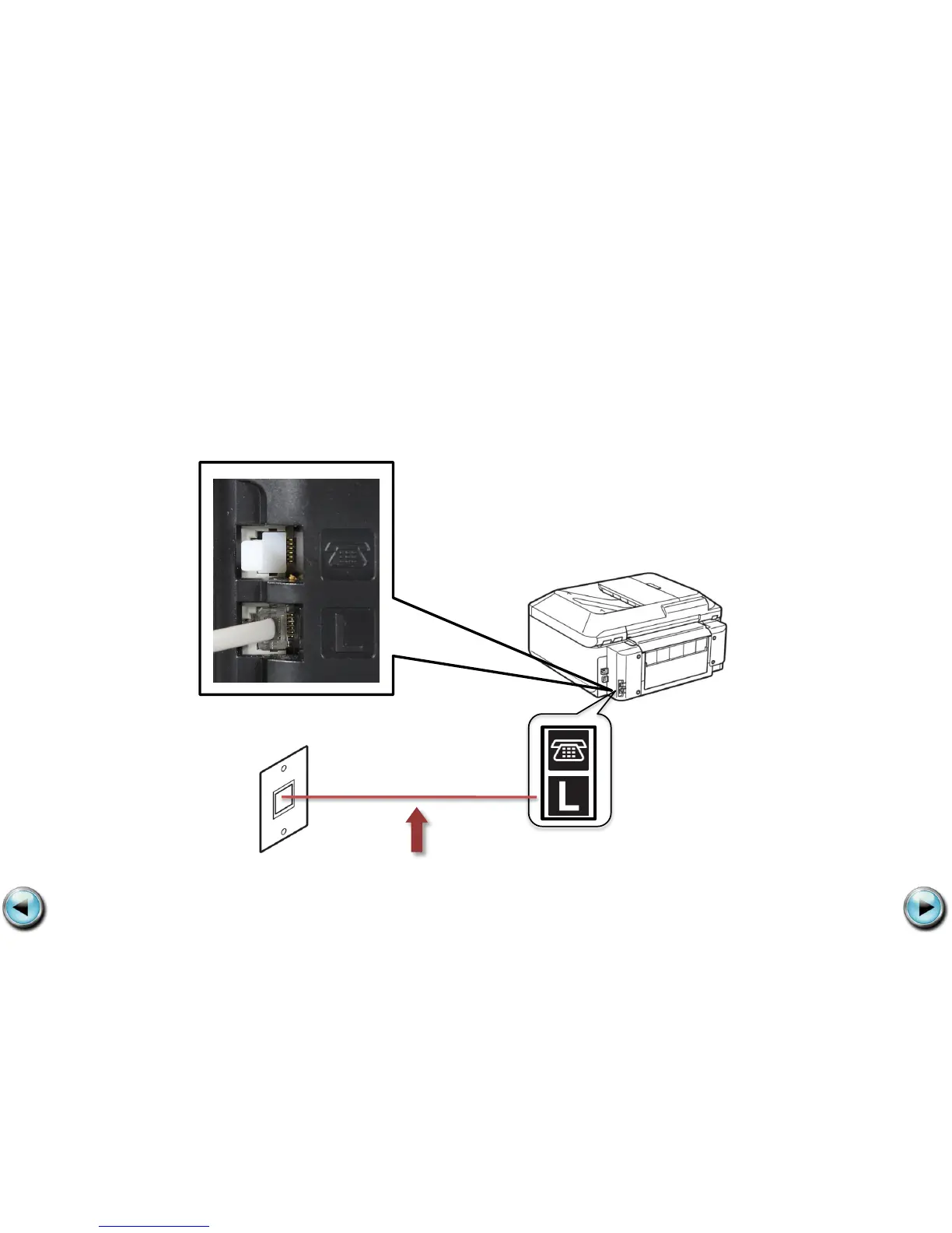 Next, connect the other end of the supplied telephone cord to the lower jack