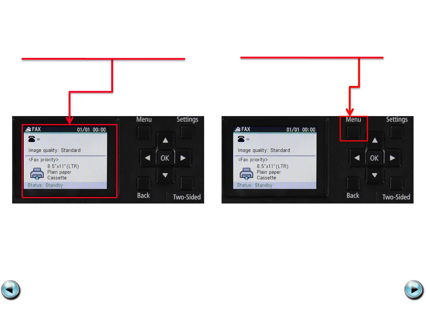 The fax standby screen will appear.