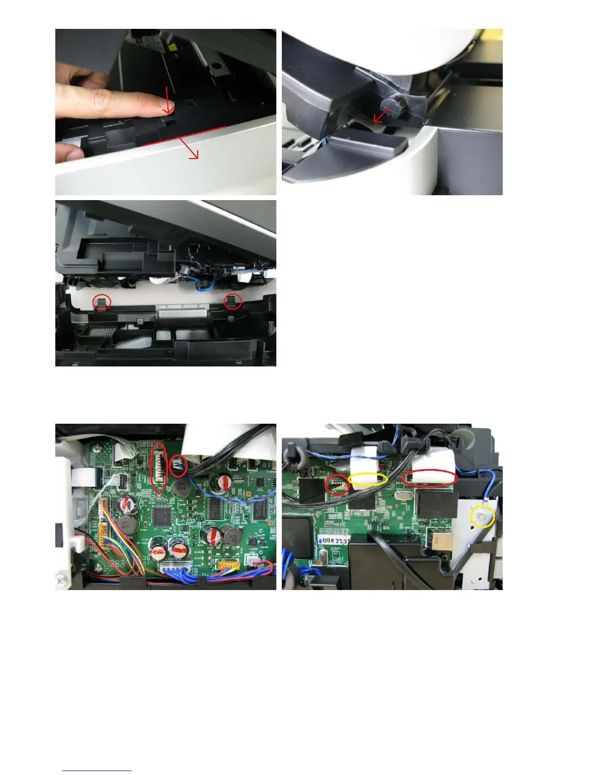 4) Remove the scanner cable, LCD cable, document feeder harness, panel ground harness, and core.