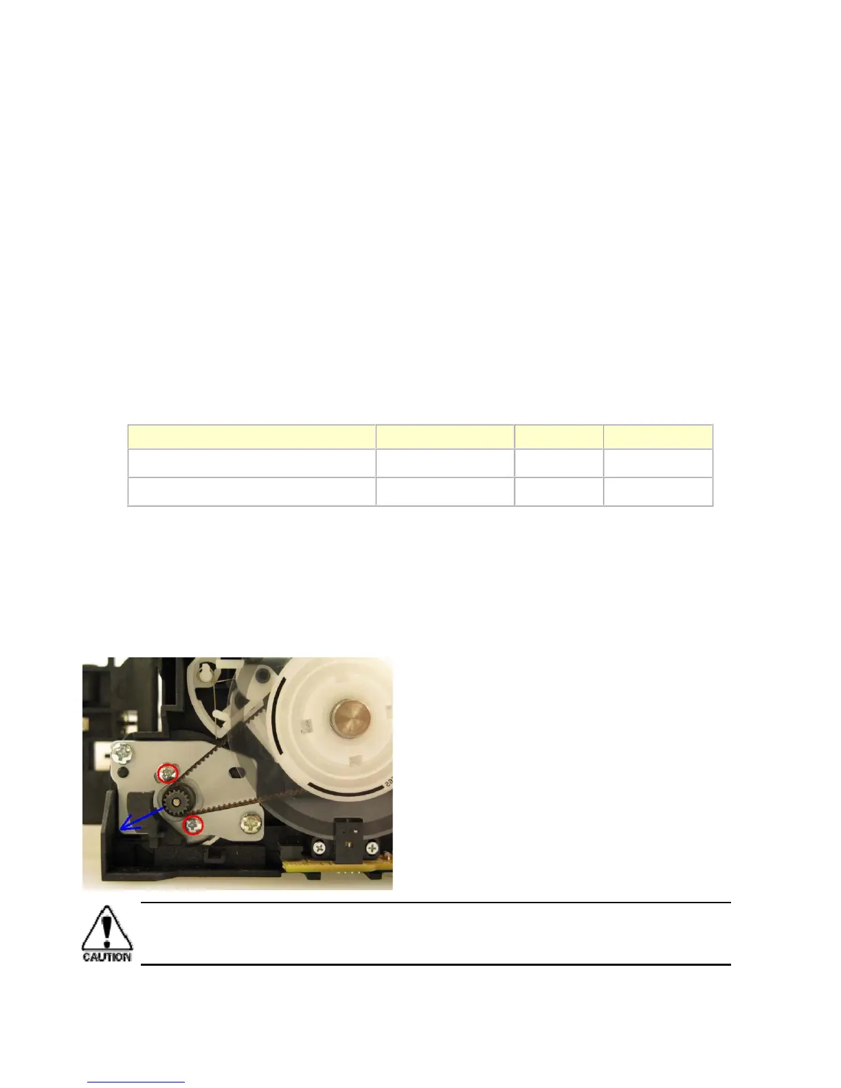2) After replacement, be sure to perform the service test print, and confirm that no strange noise or faulty print