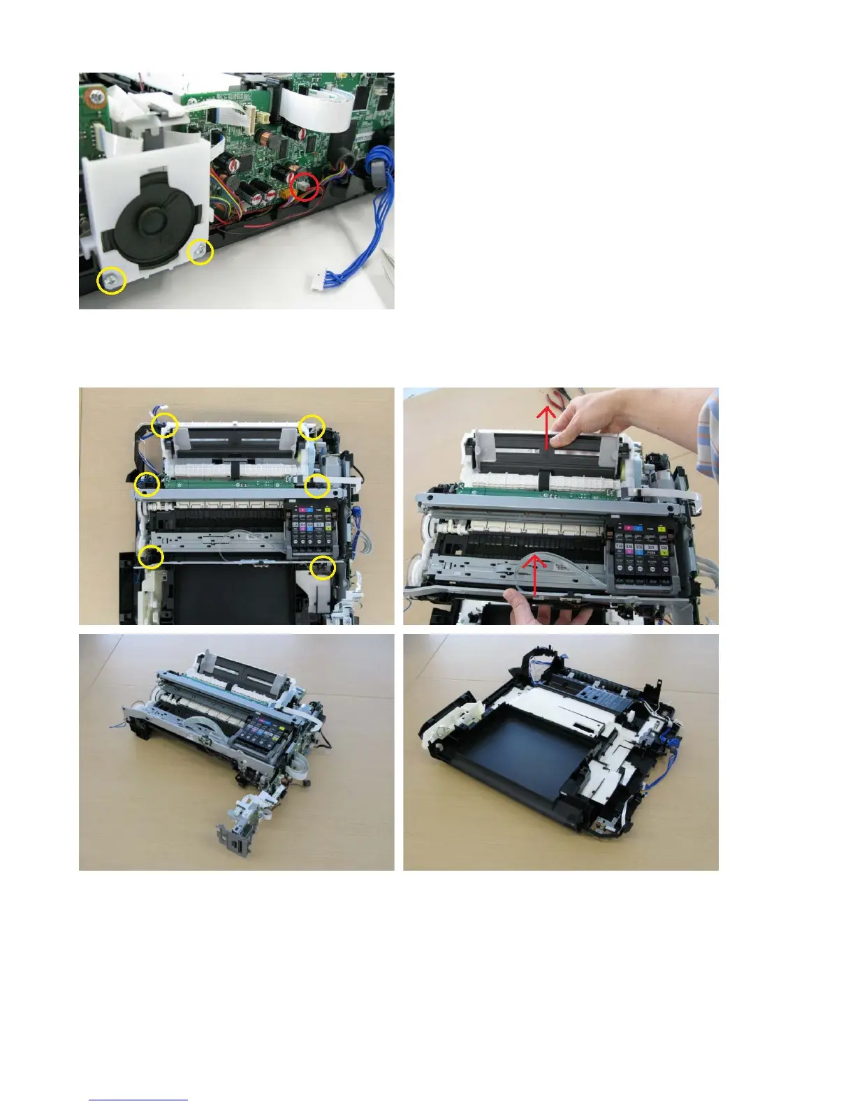 5) Remove the printer unit. (6 screws)