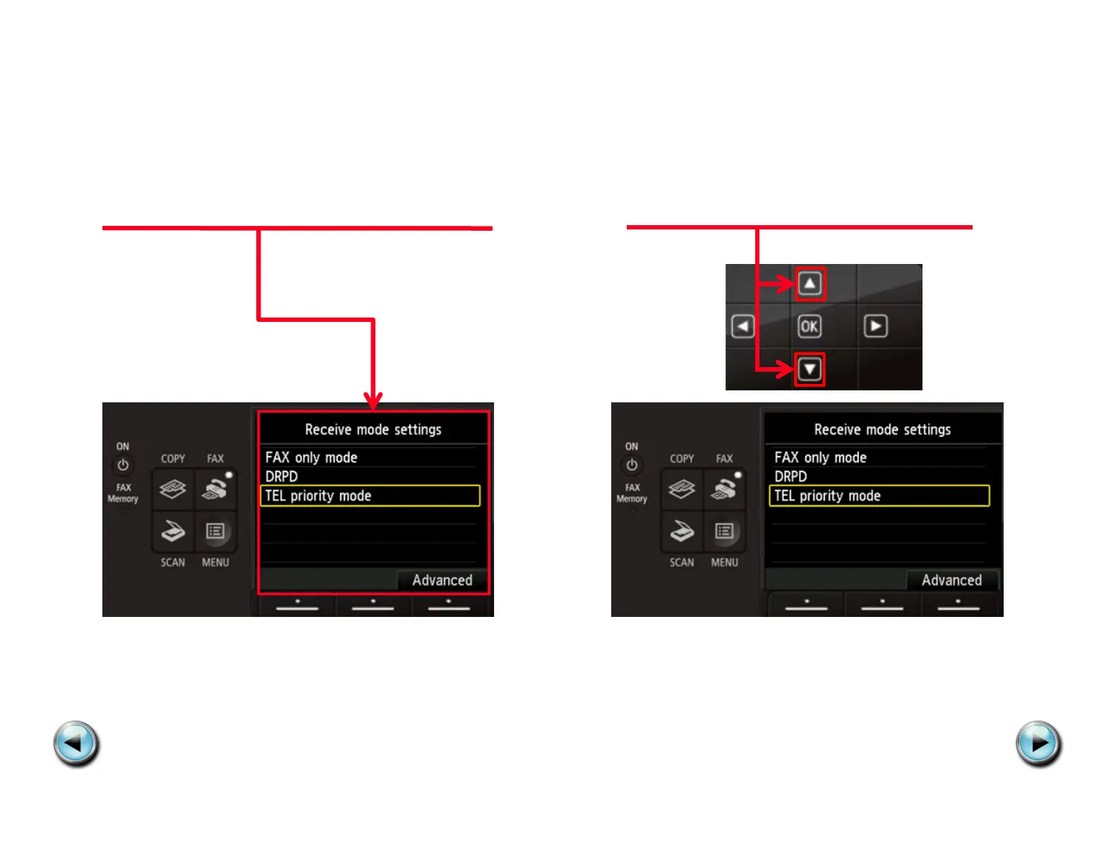 Canon MX922 - Step 5: View Receive Mode Settings; Step 6: Select TEL Priority Mode