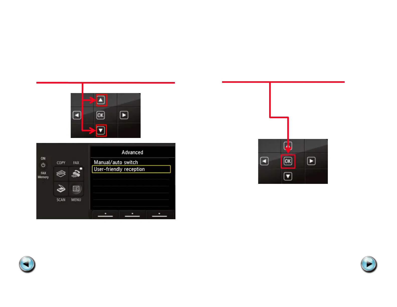 Canon MX922 - Step 9: Select User-friendly Reception; Step 10: Press OK Button
