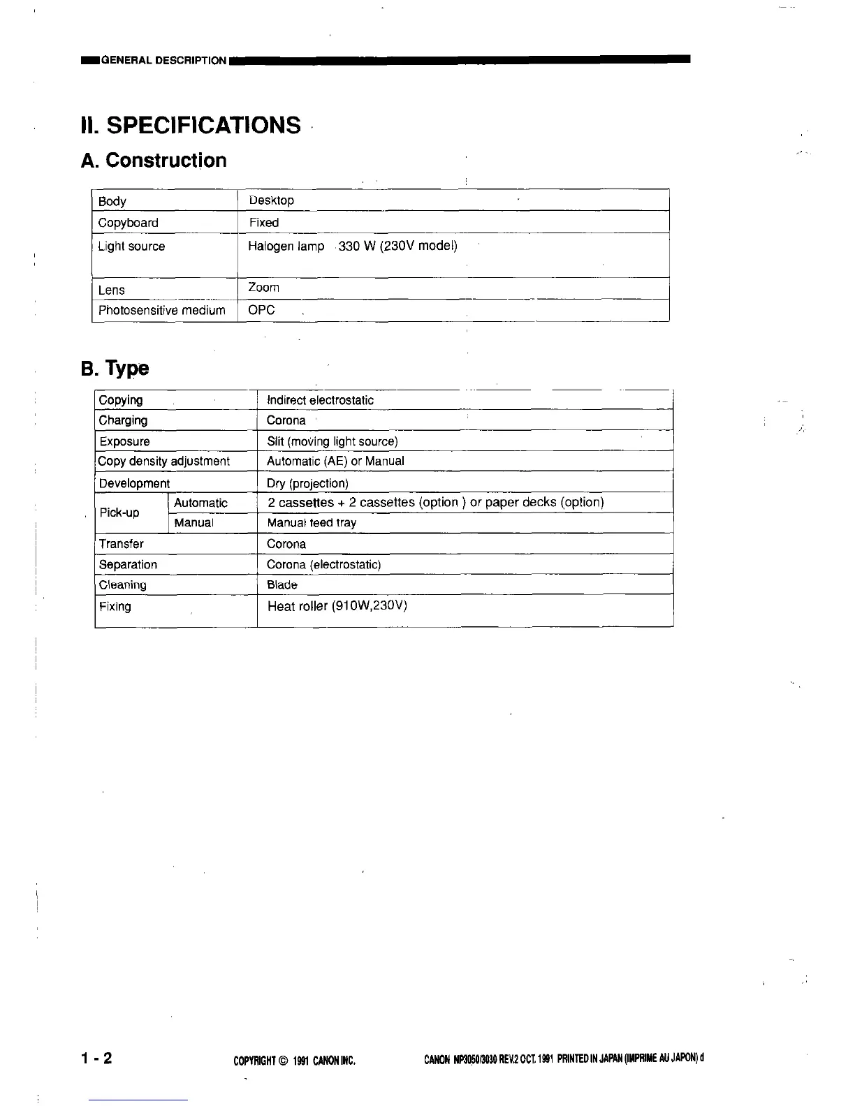COPYRIGHT 0 1991 CANON INC.