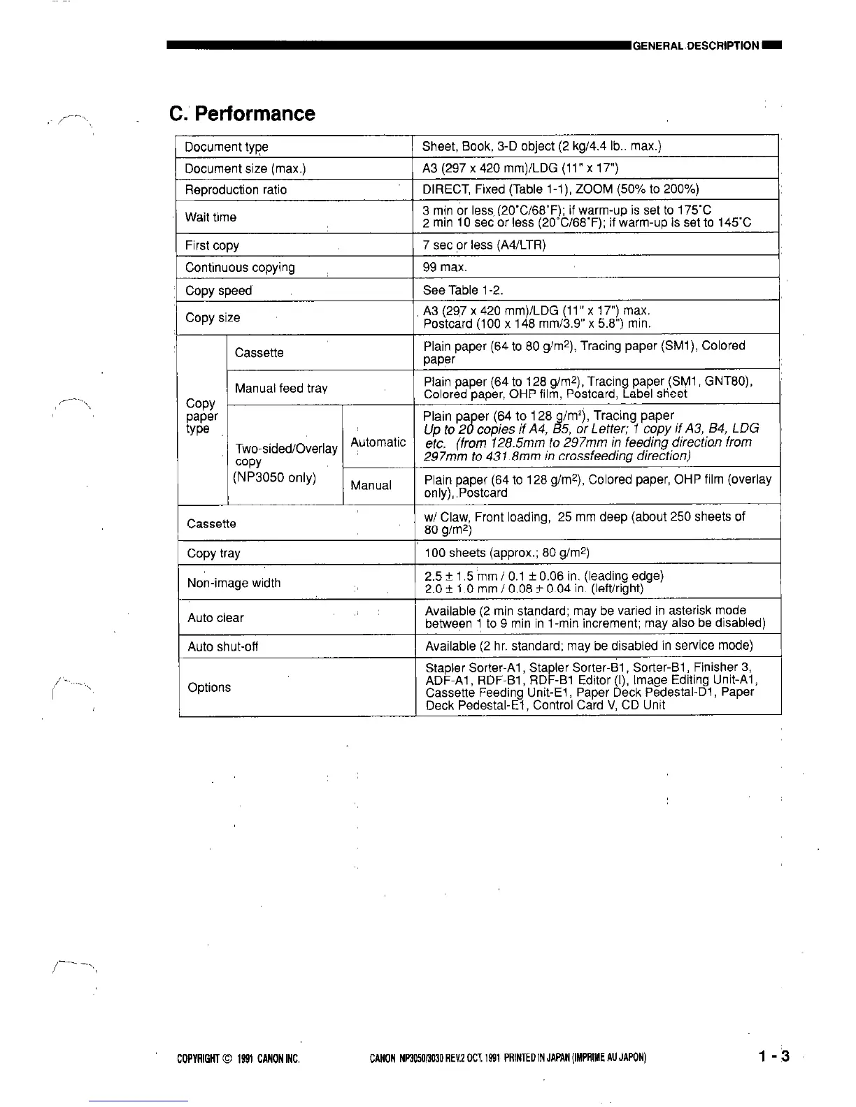 CANON NP3050RWO REV.2 OCT. 1991 PRINTED IN JAPAN (IMPRIHE AU JAPON]