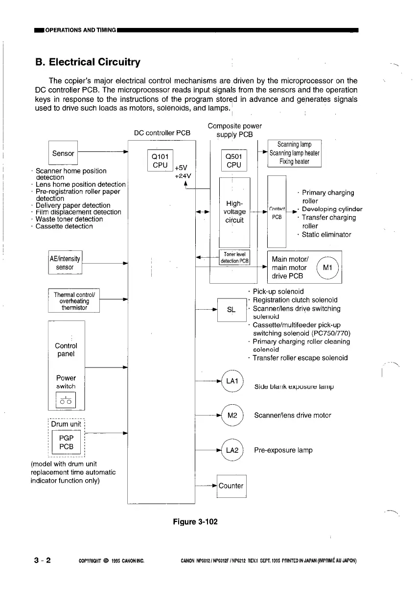 The copier’s major electrical control mechanisms are driven by the microprocessor on the